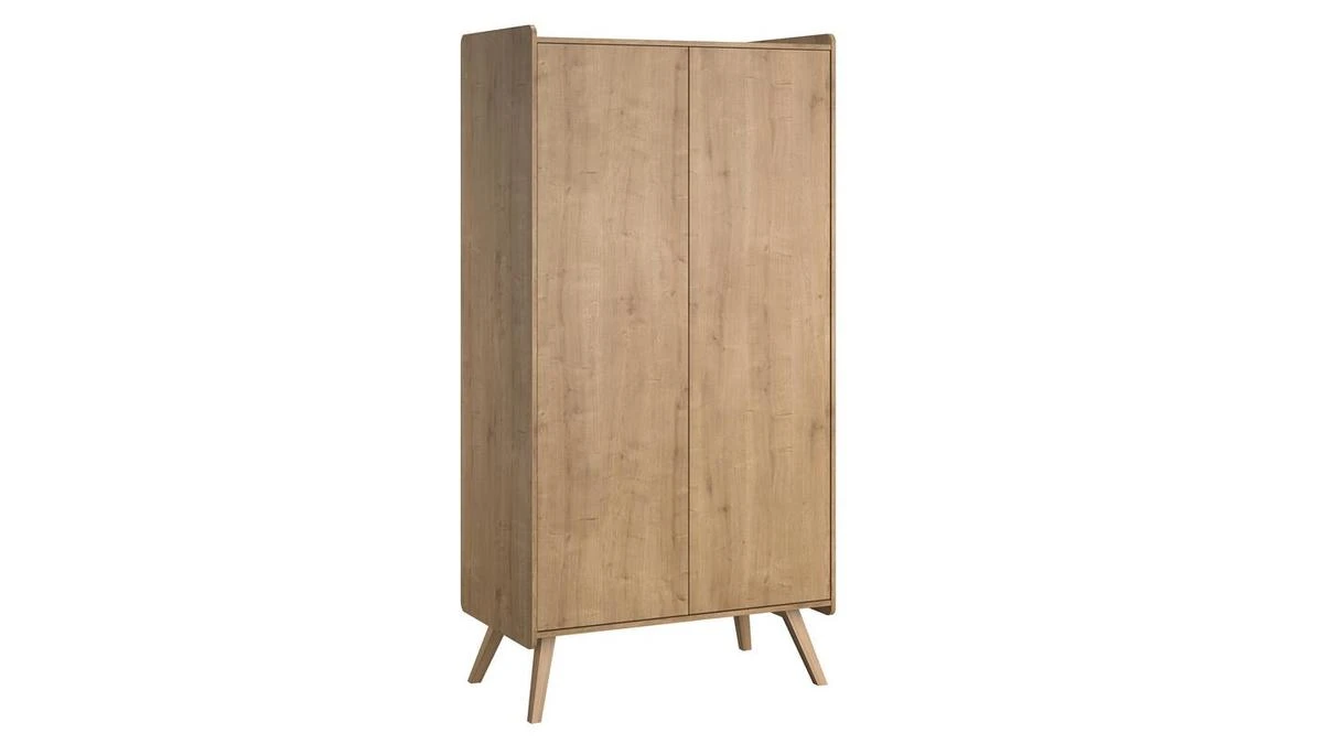 Avec sa ligne typique des années 50, MOA fera sensation dans votre intérieur. Fabriquée en Europe, cette armoire se compose d’une structure en panneaux de fibres de bois recouverte d’un élégant papier décor chêne qui met en valeur le superbe aspect veiné de la matière. L’ensemble est soutenu par un solide piètement compas en chêne massif qui nous séduit par son look rétro résolument fifties ! Cette armoire aux détails soignés et aux proportions parfaites (L100 x P58 x H200 cm) est conçue dans un esprit scandinave intemporel.