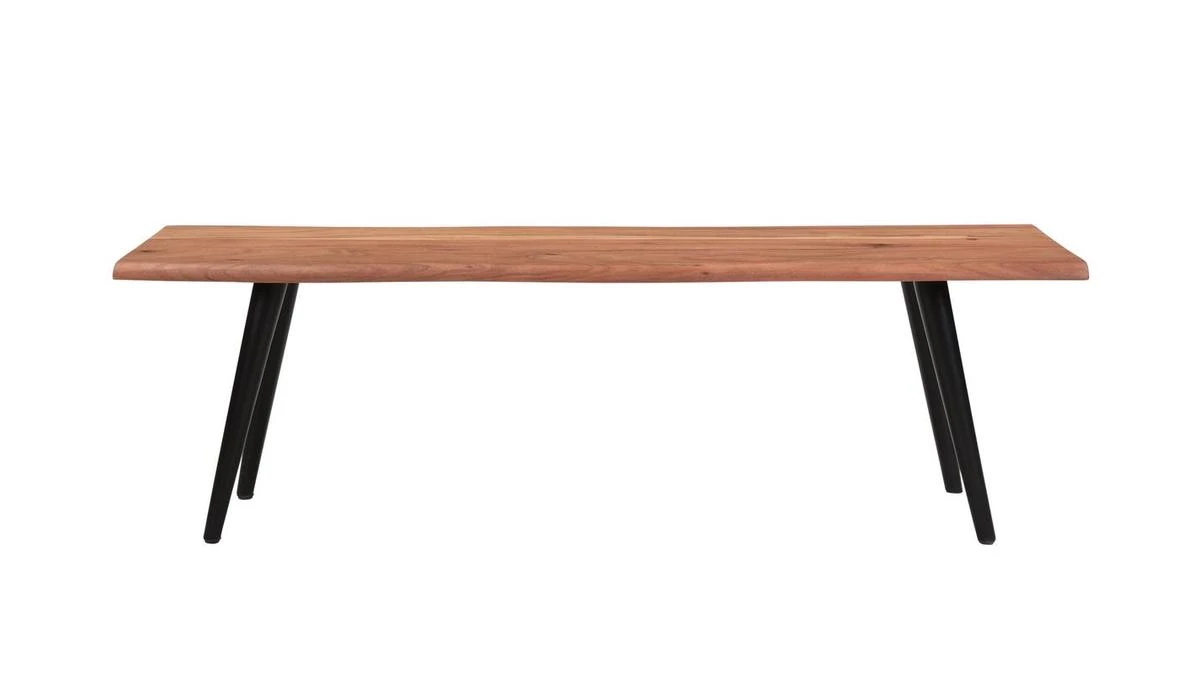 Aménagez-vous un coin repas convivial et fonctionnel en associant ce banc en bois massif et métal noir à une table à manger en bois brut. Ce banc au design affirmé trouvera aussi sa place dans les autres pièces de la maison. Hôte d’accueil dans une entrée, bout de lit dans la chambre ou dos de canapé original dans le séjour… il se prête à de nombreuses utilisations.