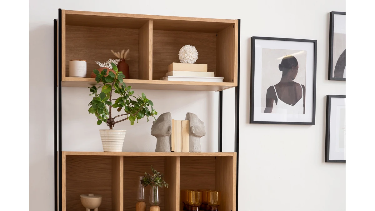 En plus d’être hyper stylée, cette bibliothèque fabriquée en Europe est très fonctionnelle : elle dispose de 5 niches ouvertes et de 2 rangements fermés. C’est un meuble pratique qui apporte des espaces de rangement aux pièces qui en manque.