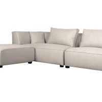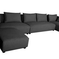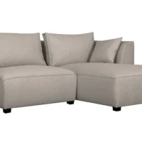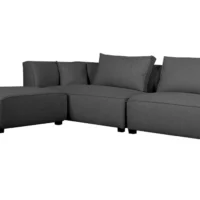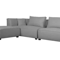 Canapé D’angle Réversible Et Convertible Avec Coffre 4 Places En Tissu Gris Et Bois Clair GRAHAM