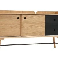 Buffet Japandi En Bois Clair Chêne Et Gris Foncé 2 Portes Coulissantes 2 Tiroirs L120 Cm JAPANSK