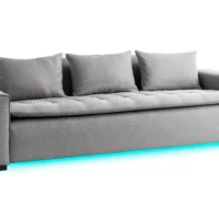 Canapé Convertible 3 Places En Tissu Gris Clair Et Bois Clair Avec Matelas L140 Cm 12 Cm GRAHAM