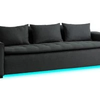 Canapé Convertible 3 Places En Tissu Bleu Canard Et Bois Clair Avec Matelas L140 Cm 12 Cm GRAHAM
