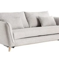 Canapé Convertible Scandinave 3 Places En Tissu Gris Clair Et Bois Clair Avec Matelas 10 Cm VENDOME