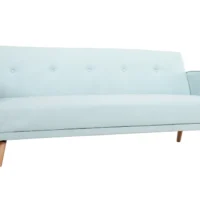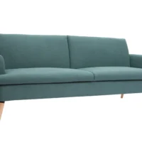 Canapé Convertible Scandinave 3 Places En Tissu Bleu Paon Et Bois Clair Avec Matelas 10 Cm CREEP