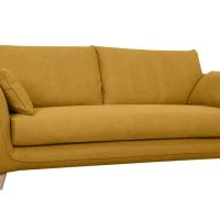 Canapé Convertible Scandinave 3 Places En Tissu Jaune Cumin Et Bois Clair Avec Matelas 10 Cm PAPEL