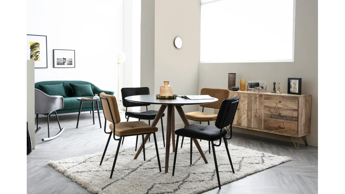 Buffet Gravé En Manguier Massif Et Métal Doré 2 Portes 3 Tiroirs L145 Cm LINIUM