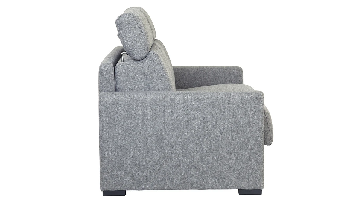La nuit, ce canapé se transforme en lit. Grâce à son système express, pas besoin d’enlever de coussin : il suffit d’abaisser le dossier pour installer rapidement un coin nuit d’appoint équipé d’un couchage 140 x 190 cm. Avec son matelas de 18 cm d’épaisseur digne d’un vrai matelas 2 places et ses rangements intégrés dans le dossier, ce canapé-lit est l’indispensable des petits espaces et des nuits confortables.