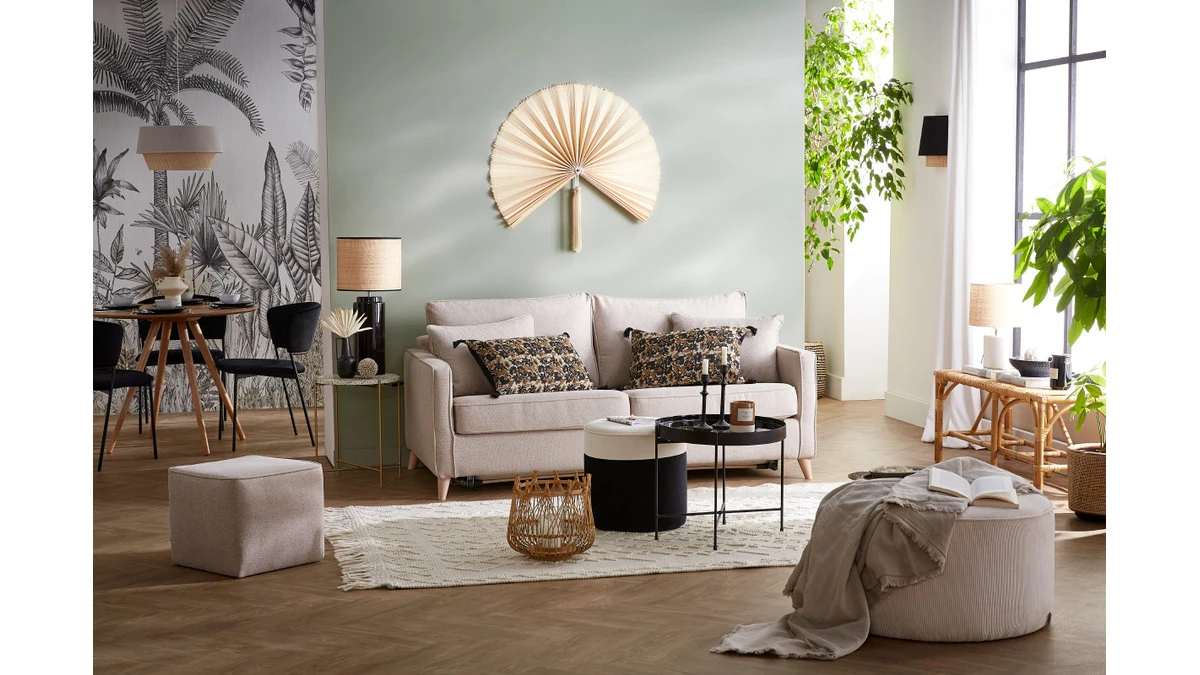 Ce canapé convertible allie avec brio confort d’un lit 140 et design d’inspiration nordique. Fabriqué en France, le modèle PAPEL est une assise de qualité aux finitions soignées. Il marie à merveille le minimalisme et la fonctionnalité chers au design scandinave avec la modernité et l’élégance des créations françaises. Son piètement en pin massif et son revêtement en polyester en font un canapé chaleureux. Aménagez un espace convivial dans votre salon en associant ce canapé 3 places avec une table basse en bois.