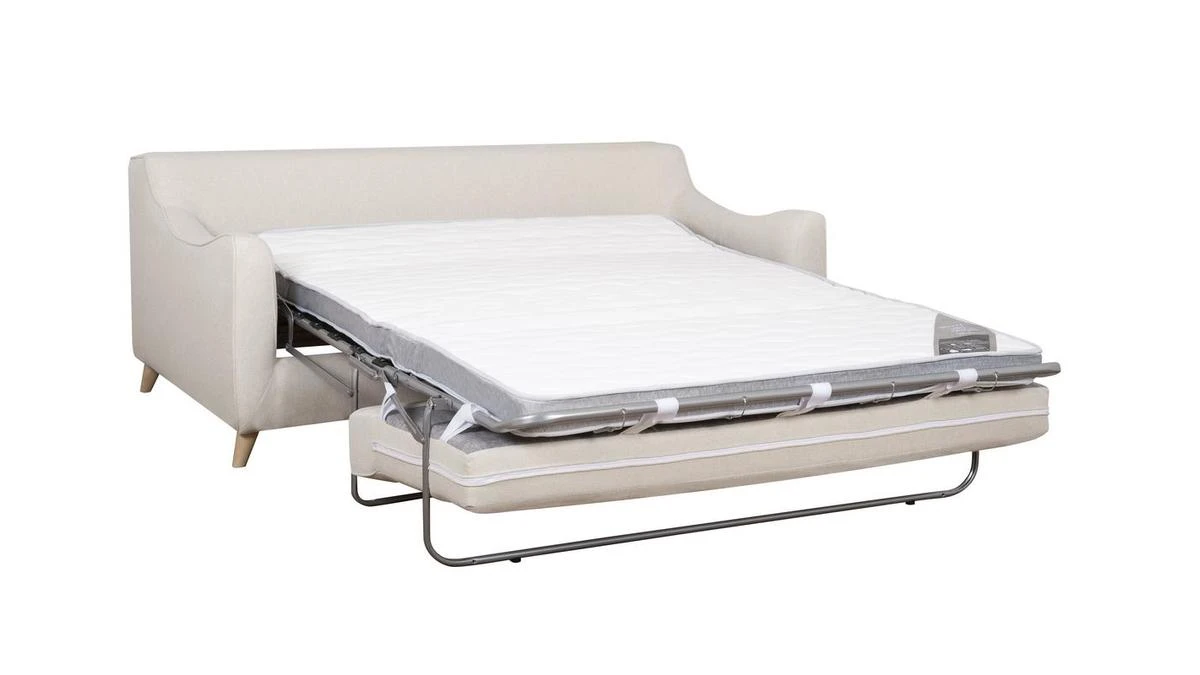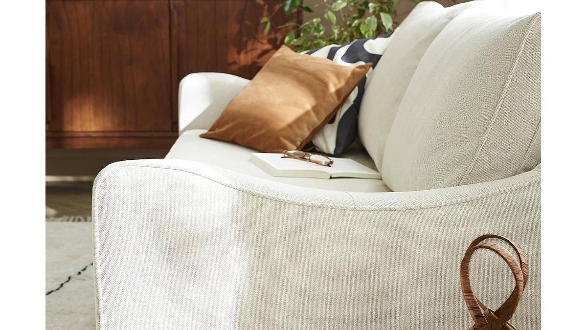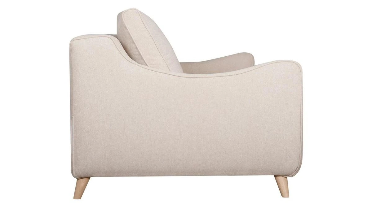 Ce canapé 100% made in France conjugue notre exigence de qualité avec notre souci du détail. Avec ses courbes accueillantes et ses volumes parfaitement équilibrés, ce canapé scandinave réunit confortablement jusqu’à 3 personnes. Son assise ample et rembourrée (densité 28 kg/m3) a été pensée pour nous garantir un maximum de confort. Son élégant revêtement beige nous enveloppe de sa douceur et ses quatre pieds compas en hêtre massif (H10 cm) apportent un joli look rétro.
