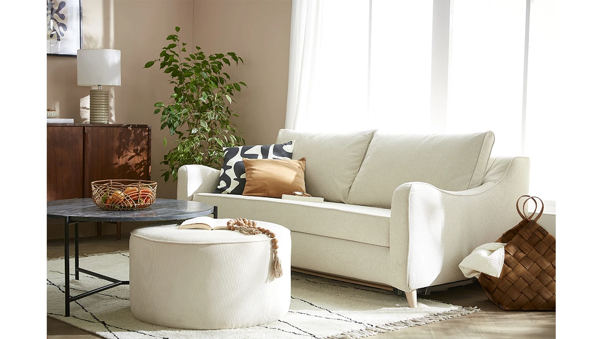 Le canapé VENDOME est la pièce maîtresse d’un salon cosy au charme naturel. Accompagnez-le d’une table basse en bois de la collection MILIBOO afin de créer un lieu de vie convivial et chaleureux.