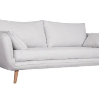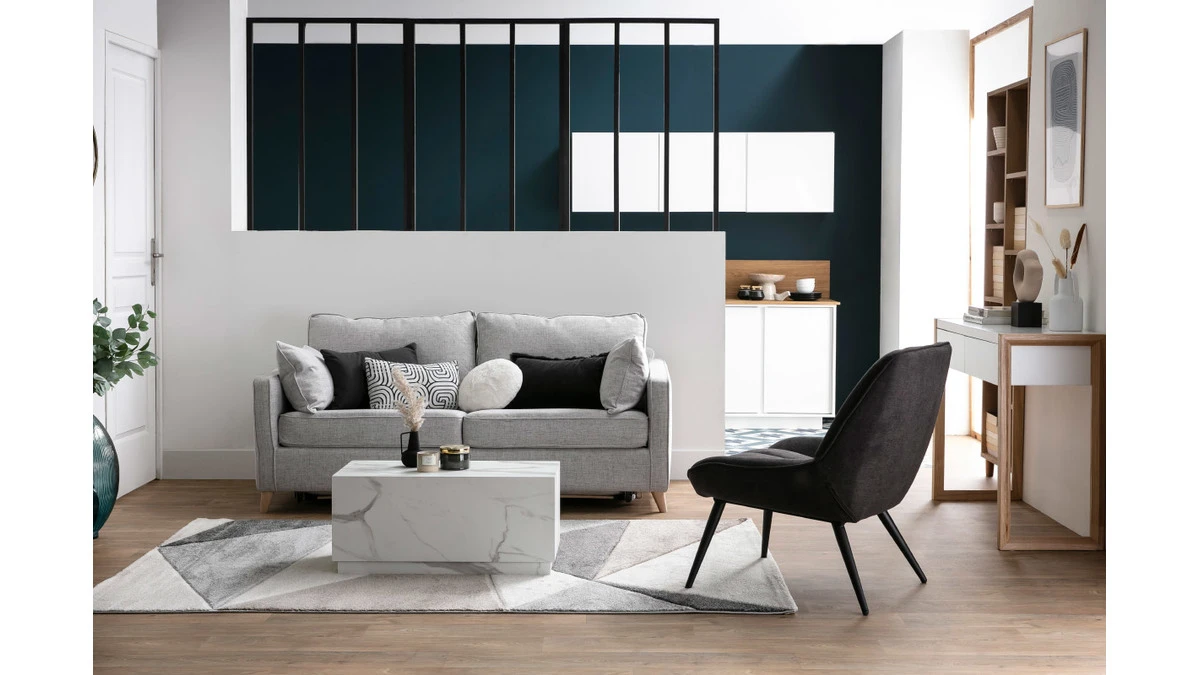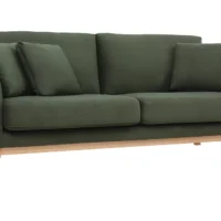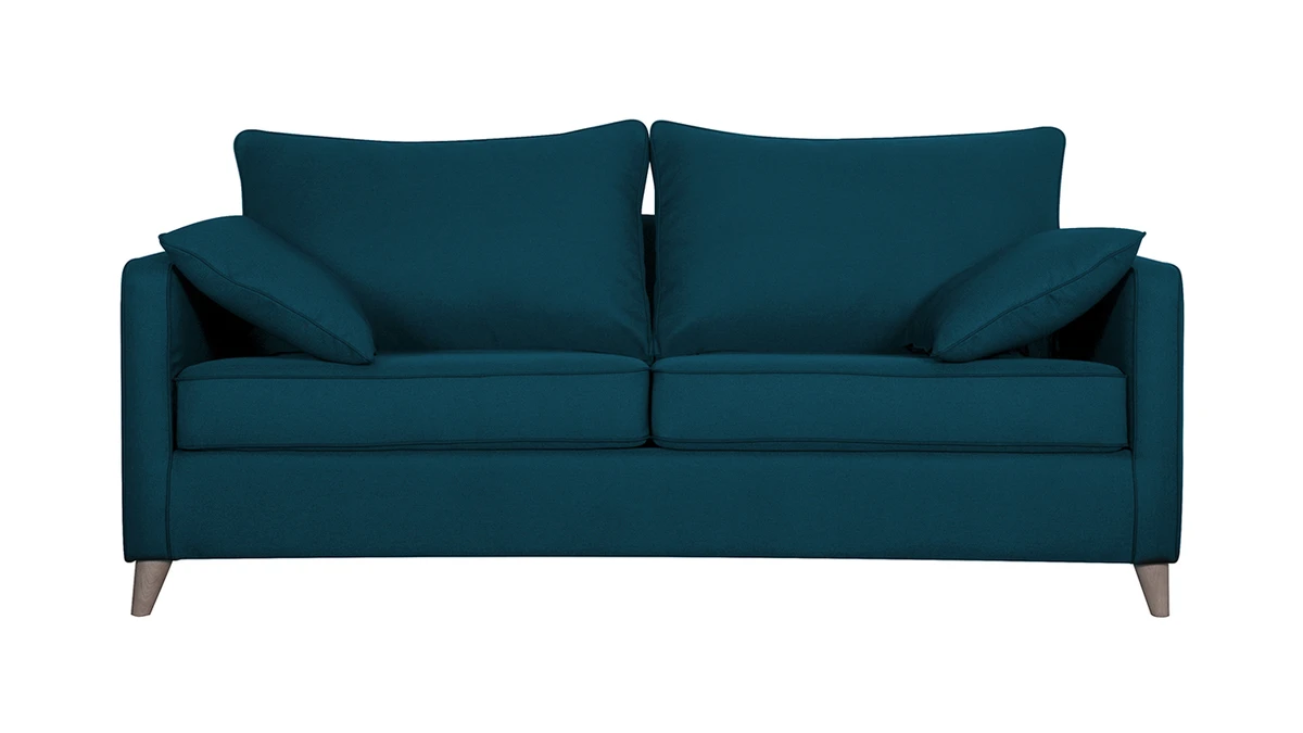Canapé Convertible Scandinave 3 Places En Tissu Bleu Canard Et Bois Clair Avec Matelas 10 Cm PAPEL
