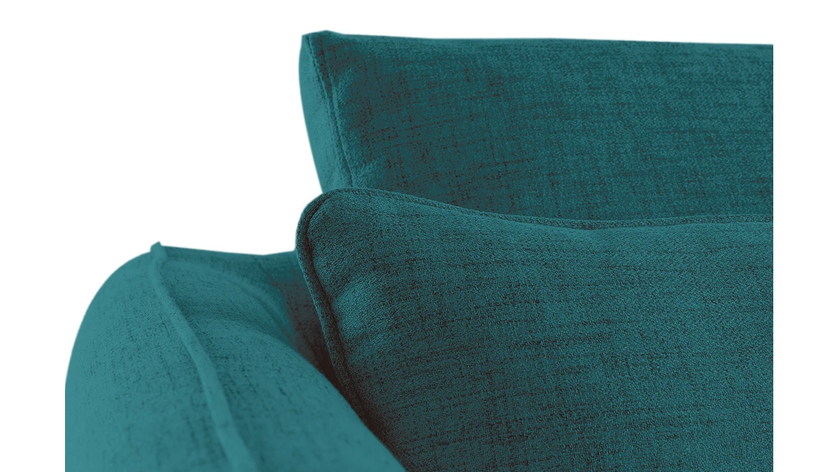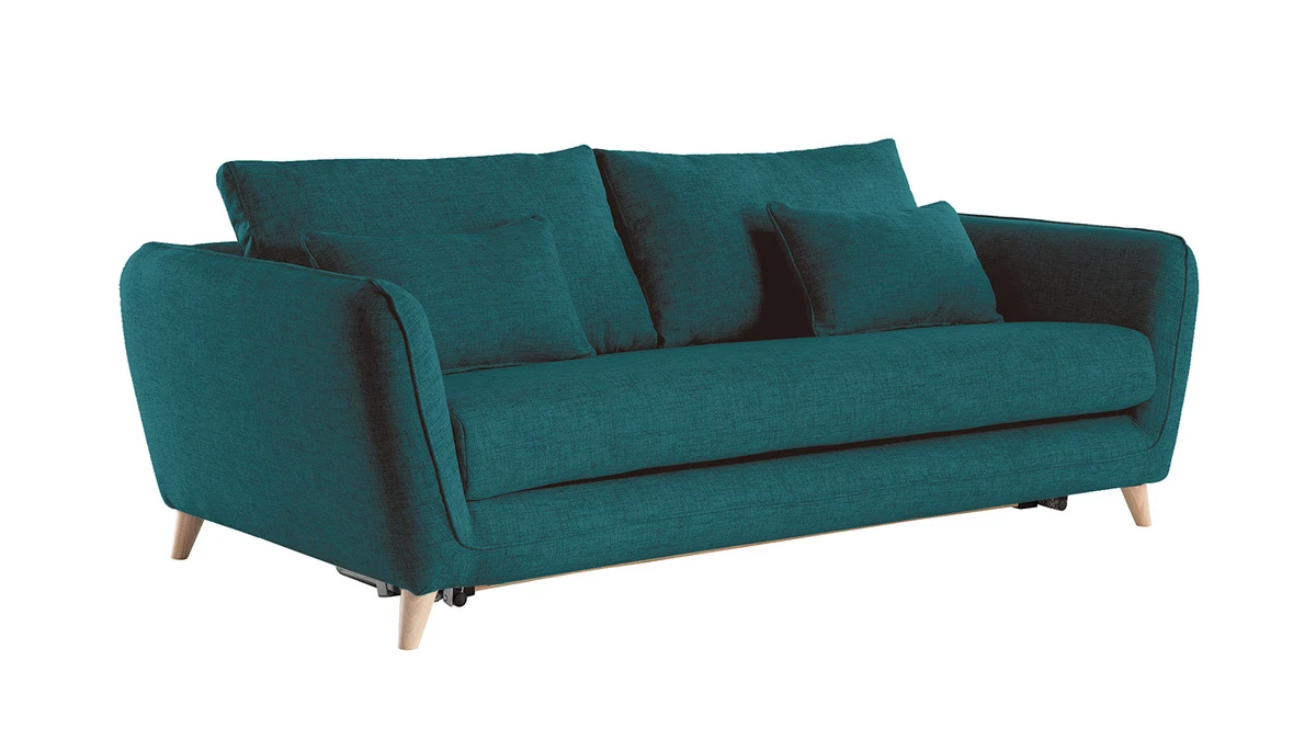 Canapé Convertible Scandinave 3 Places En Tissu Bleu Paon Et Bois Clair Avec Matelas 10 Cm CREEP