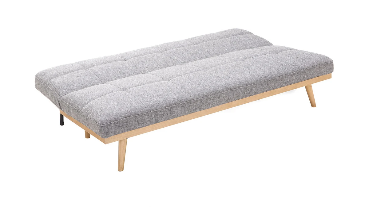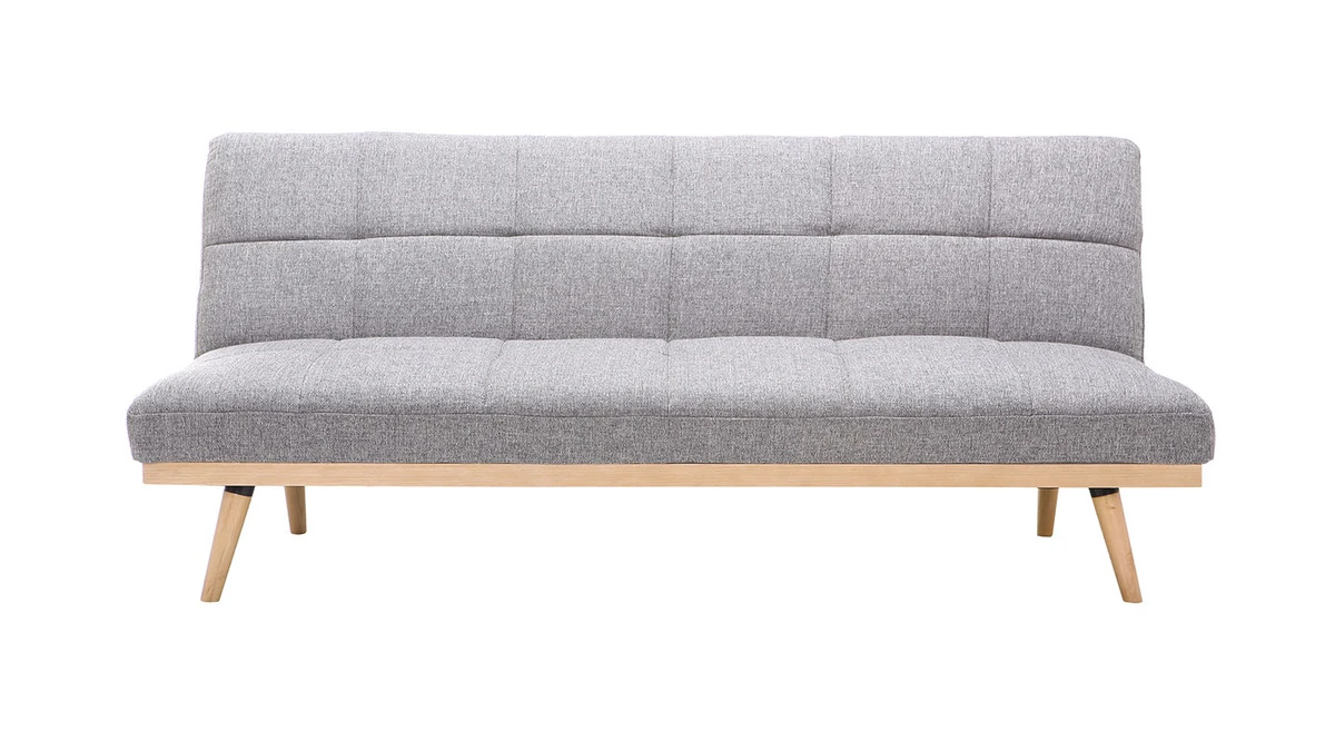 Avec un piètement incliné en pin et un revêtement en tissu gris, ce canapé lit saura apporter la touche déco à votre pièce.