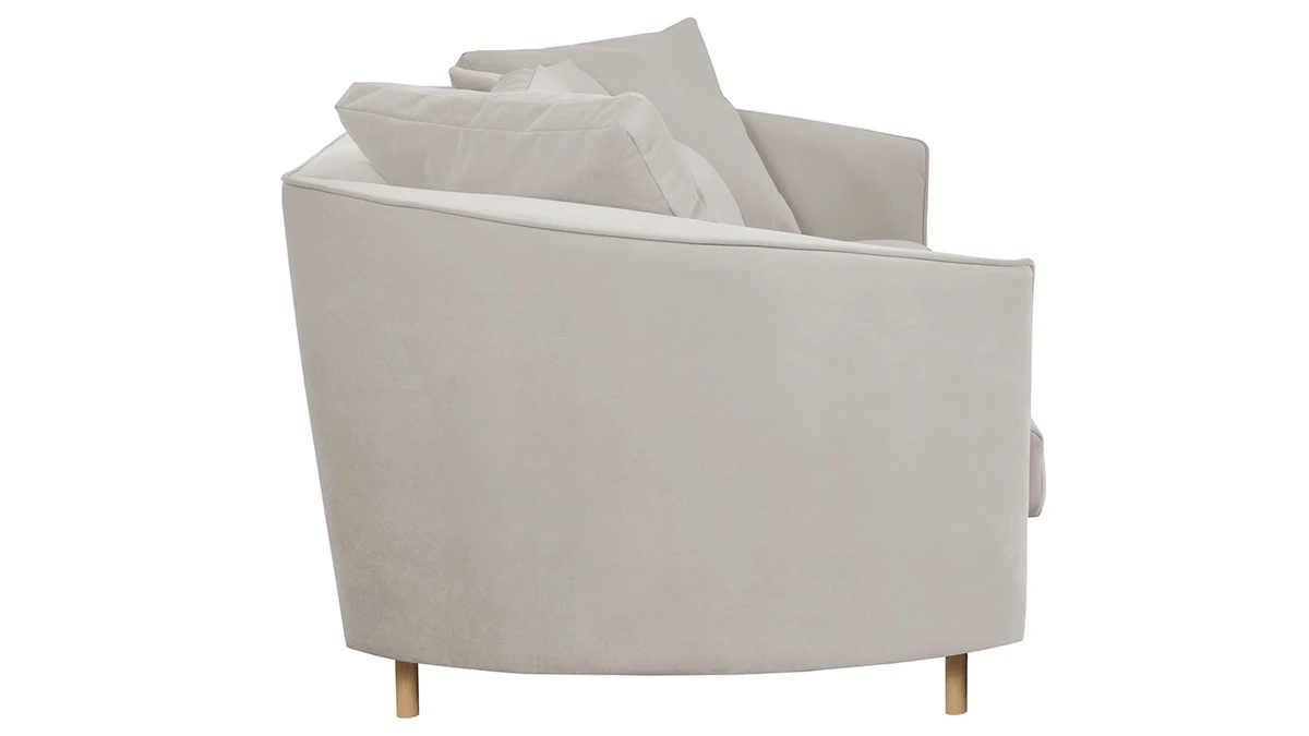 Vêtu de velours, le canapé SELECT apportera une touche de douceur pour un intérieur réconfortant. Matière tendance, le velours saura sublimer une décoration au style contemporain. Grâce à sa forme arrondie et son ton neutre, le canapé SELECT est une pièce élégante. Il est idéal pour apporter un esprit glamour et raffiné à la pièce de vie. Il est complété par quatre pieds en hêtre massif qui sublime le revêtement en velours tout en apportant une touche d’authenticité. Associez ce canapé avec une table basse en bois pour un salon chaleureux et cosy.