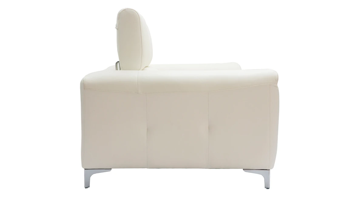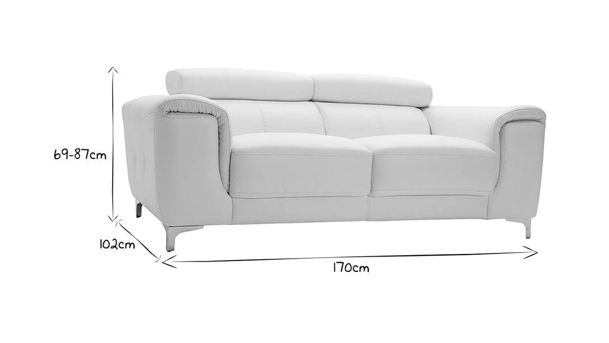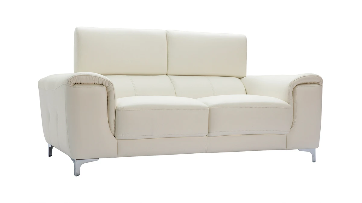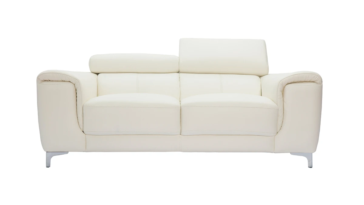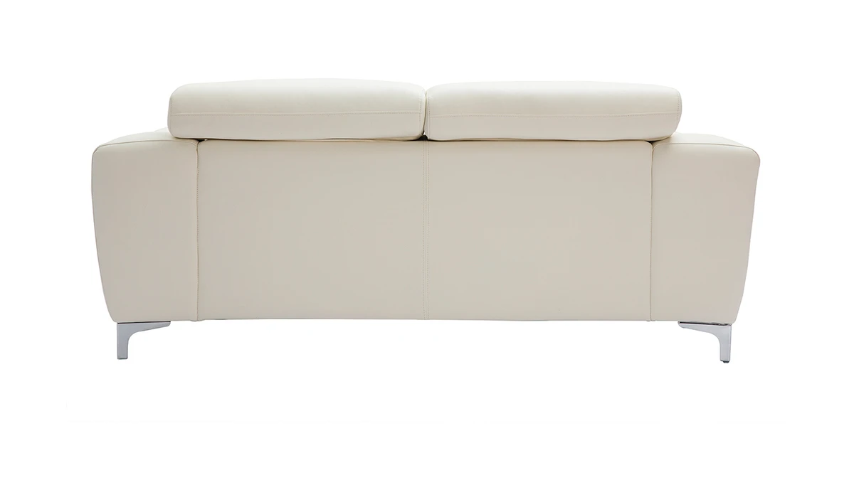 Canapé Design Avec Têtières Ajustables 2 Places Cuir Blanc Cassé Et Acier Chromé NEVADA