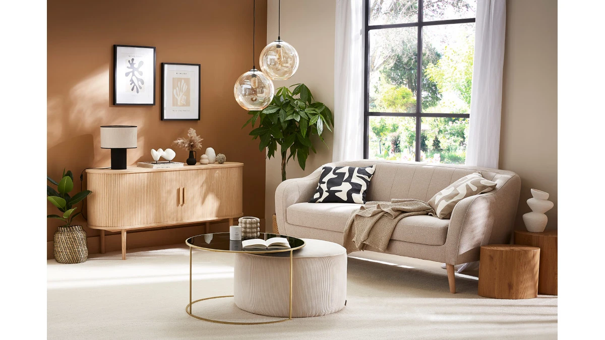 Canapé Scandinave 2-3 Places En Tissu Beige Et Bois Clair ISIS