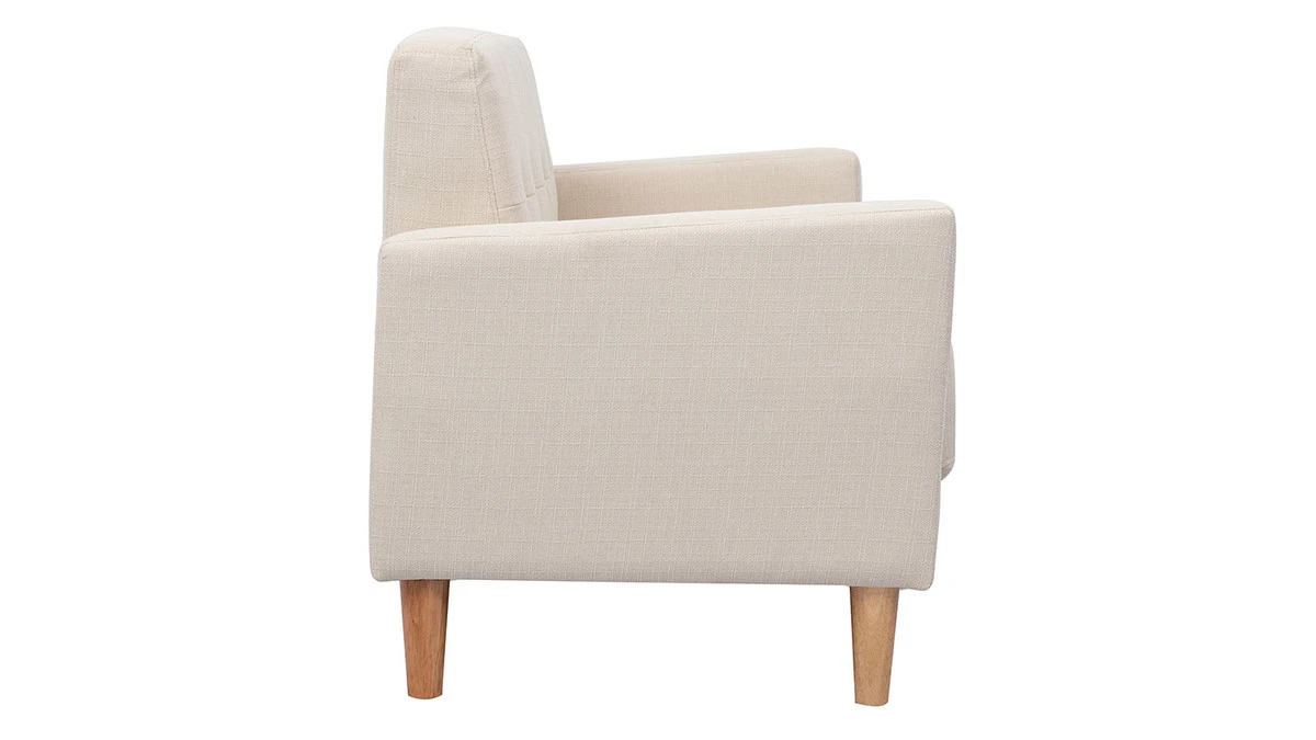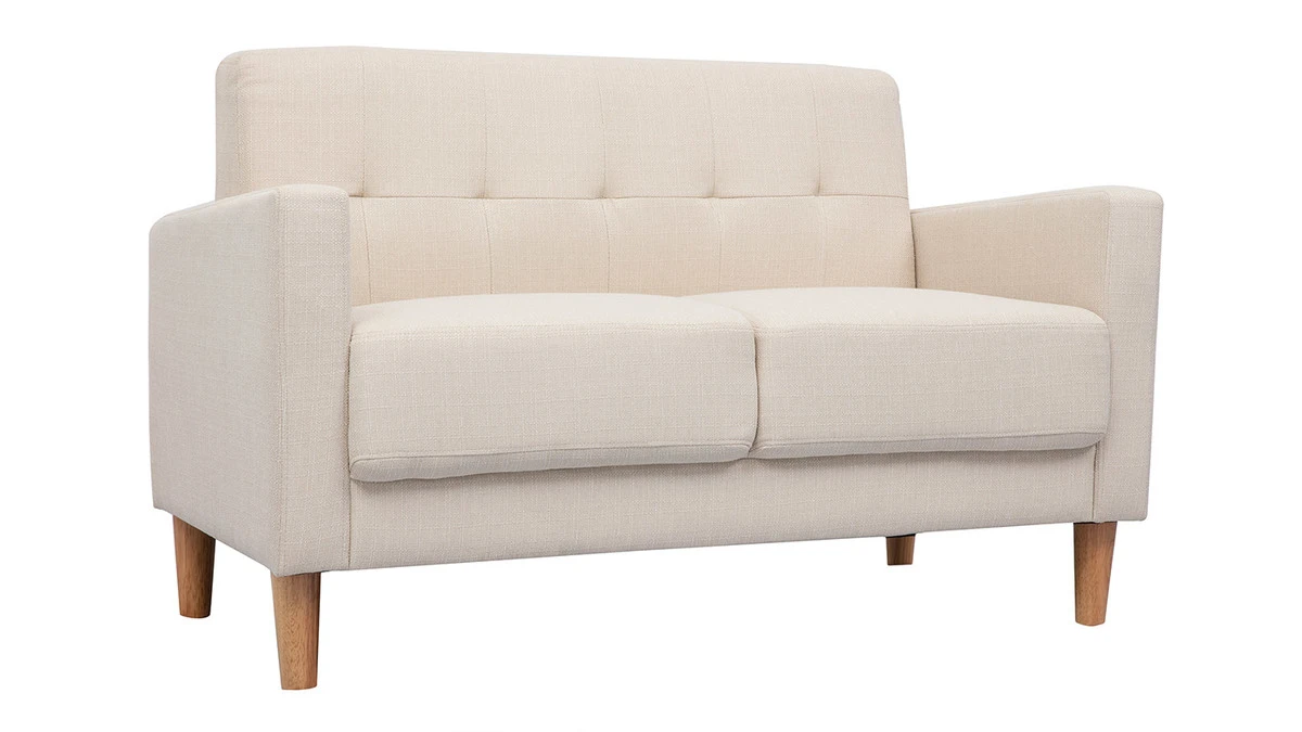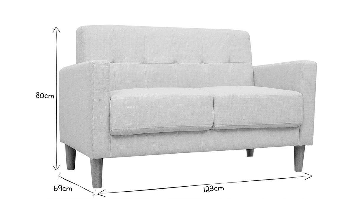 Son piètement en hévéa massif apporte un côté nature et scandinave en plus de lui conférer une stabilité et un maintien parfait. Son assise épaisse offre un bon confort et promet des soirées agréables et cocooning devant la télévision. Ses petites dimensions sont parfaites pour agrémenter un petit salon ou une chambre. Ce canapé 2 places peut être accompagné de fauteuils scandinaves assortis.