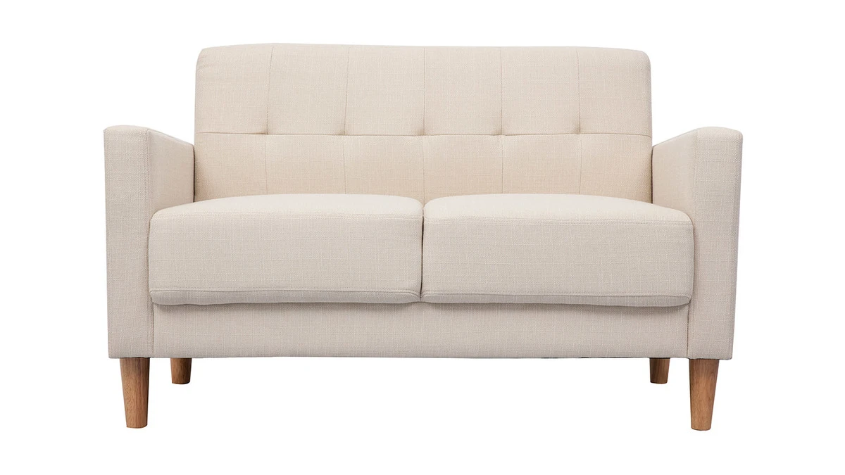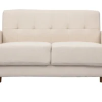 Avec son assise pour deux personnes en tissu beige, il apporte une touche chaleureuse et des teintes douces à votre intérieur. Ce canapé joue sur un subtil jeu de formes et un dossier capitonné qui convient parfaitement à un salon classique ou plus moderne.