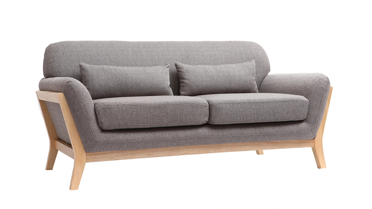Le mariage entre une assise généreuse revêtue de polyester et une structure apparente en bois massif fait tout le charme de ce canapé 2 places. Le frêne est une essence de bois claire à la beauté naturelle et au rendu chaleureux. Elle apporte cette touche d’authenticité qu’on aime tant dans les meubles scandinaves. Ce canapé scandinave est une assise de salon conviviale et élégante.