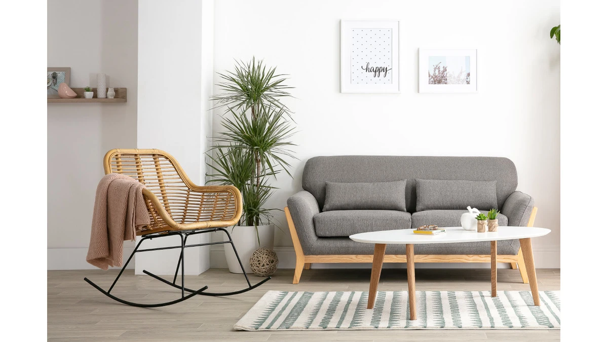 Ce petit canapé, accompagné d’une table basse en bois, ajoutera une touche cocooning à la pièce à vivre, que sa décoration soit moderne ou scandinave.