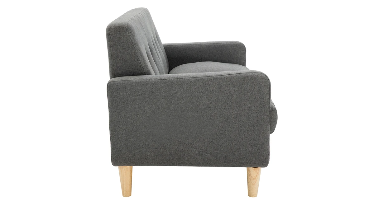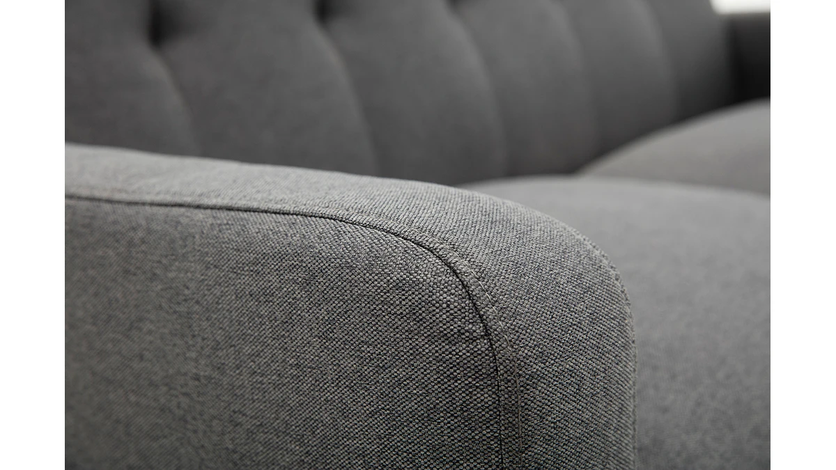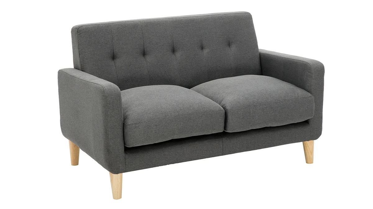 Avec le canapé LUNA, les studios et les petits séjours s’équipent d’une assise gain de place ultra déco. Ses jolies courbes et ses coussins moelleux transforment le salon en véritable petit cocon où il fait bon se détendre. Ce mini canapé associe un revêtement chaleureux en polyester gris foncé avec un piètement naturel en bois massif. Il rassemble les essentiels pour un petit salon cosy.