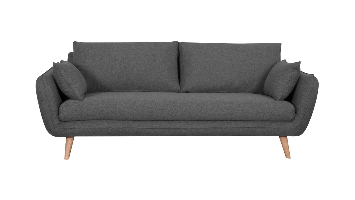 Canapé Scandinave 3 Places En Tissu Gris Anthracite Et Bois Clair CREEP
