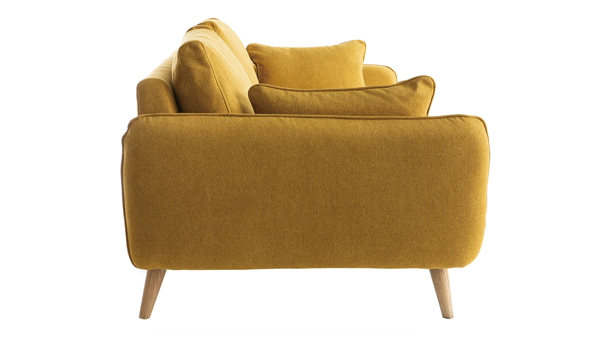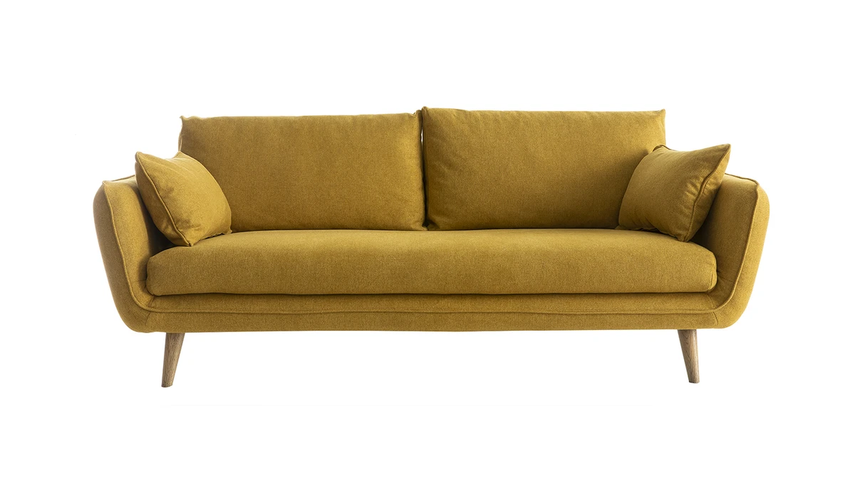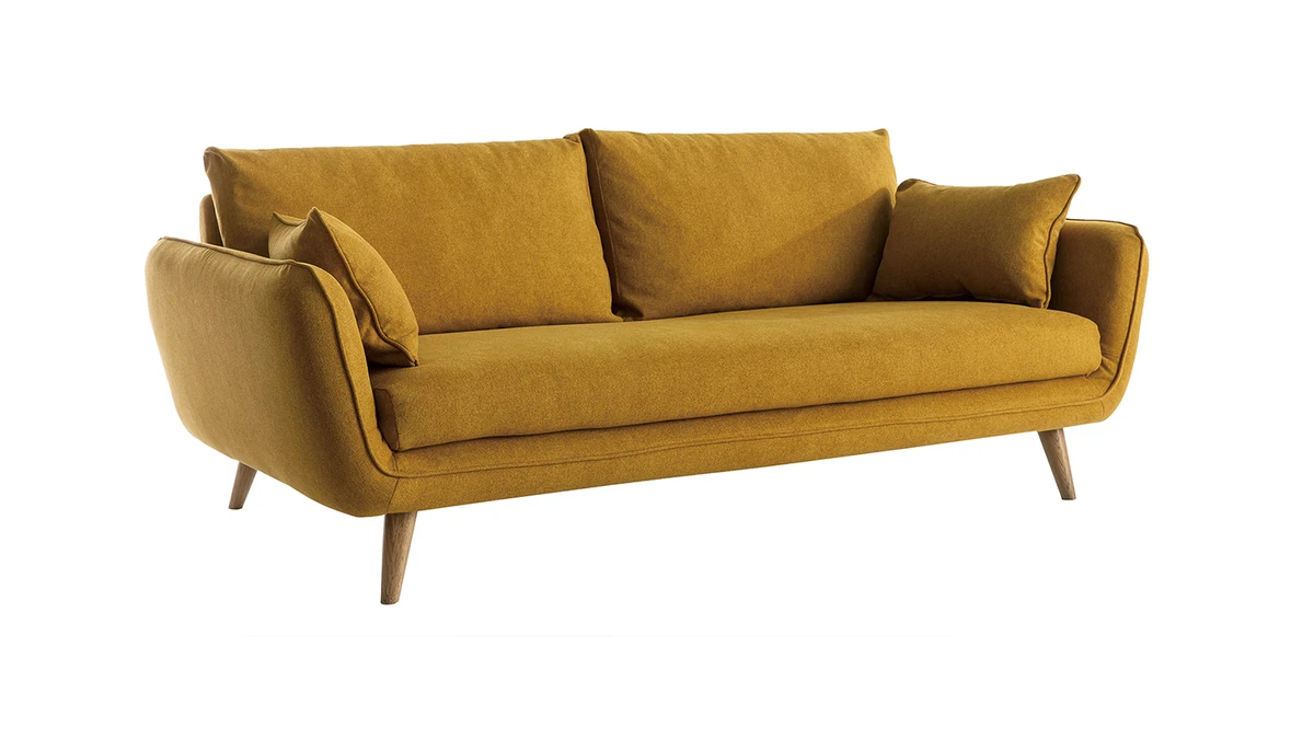 D’inspiration scandinave, le canapé 3 places CREEP trouvera sa place dans de nombreux salons grâce à sa ligne épurée et ses courbes intemporelles. Son joli revêtement en polyester jaune cumin apporte une touche colorée subtile et chaleureuse à cet ensemble à la sobriété élégante. Il est complété par un piètement en hêtre massif. Solide et naturel, il sublime cette assise au design réussi. Le canapé CREEP est fabriqué en France. On retrouve, dans ses matériaux et sa forme élégante, la qualité et le savoir-faire français.