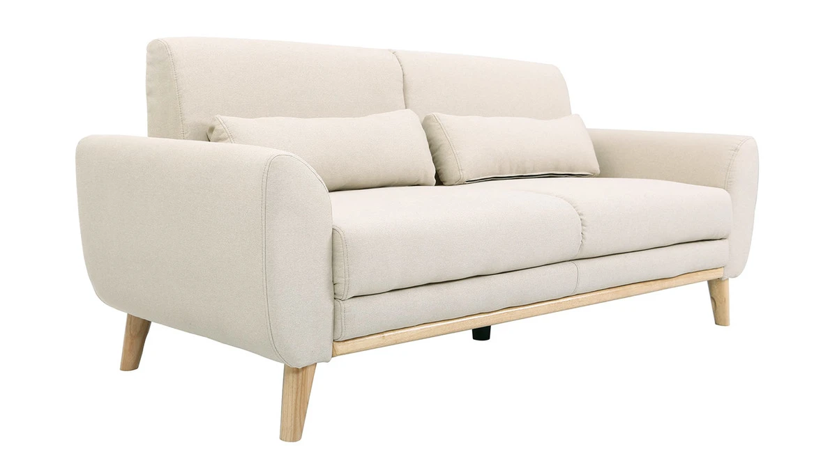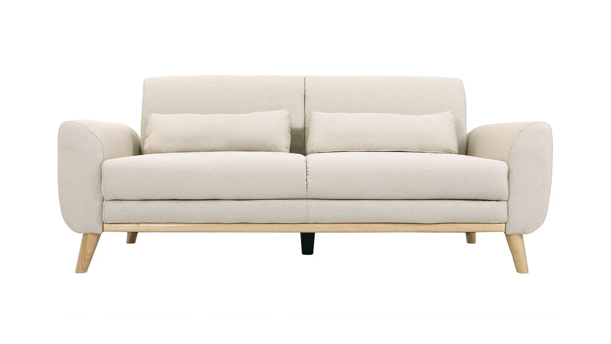 Composé d’une assise en tissu beige naturel et d’un piètement en hévéa massif, ce canapé scandinave est un concentré de style et de douceur. Le mélange réussi entre l’aspect chaleureux du bois et l’élégance d’un revêtement en tissu fait de ce canapé 3 places un bel objet déco qui trouvera facilement sa place dans un salon contemporain ou un séjour d’inspiration nordique.