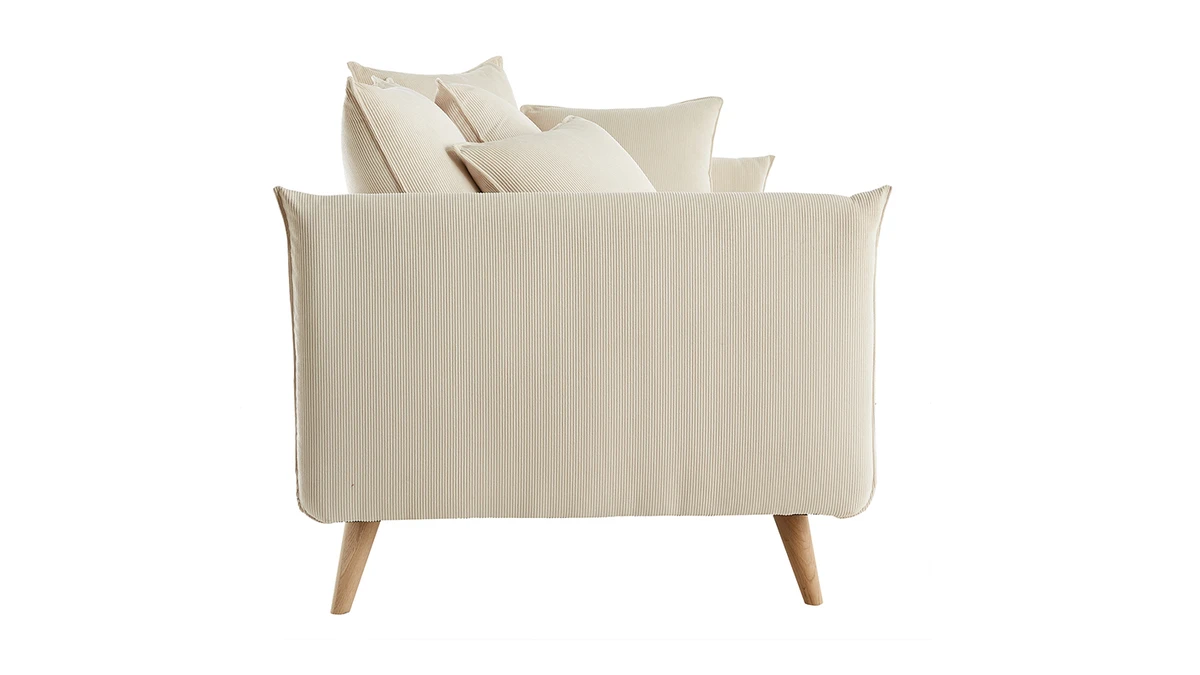 Prenez place au coeur de ce canapé aux formes douces et accueillantes. Moelleux comme des nuages, les grands coussins de dossier (L55 x L55 cm) définissent la silhouette légère et décontractée de ce canapé familial.