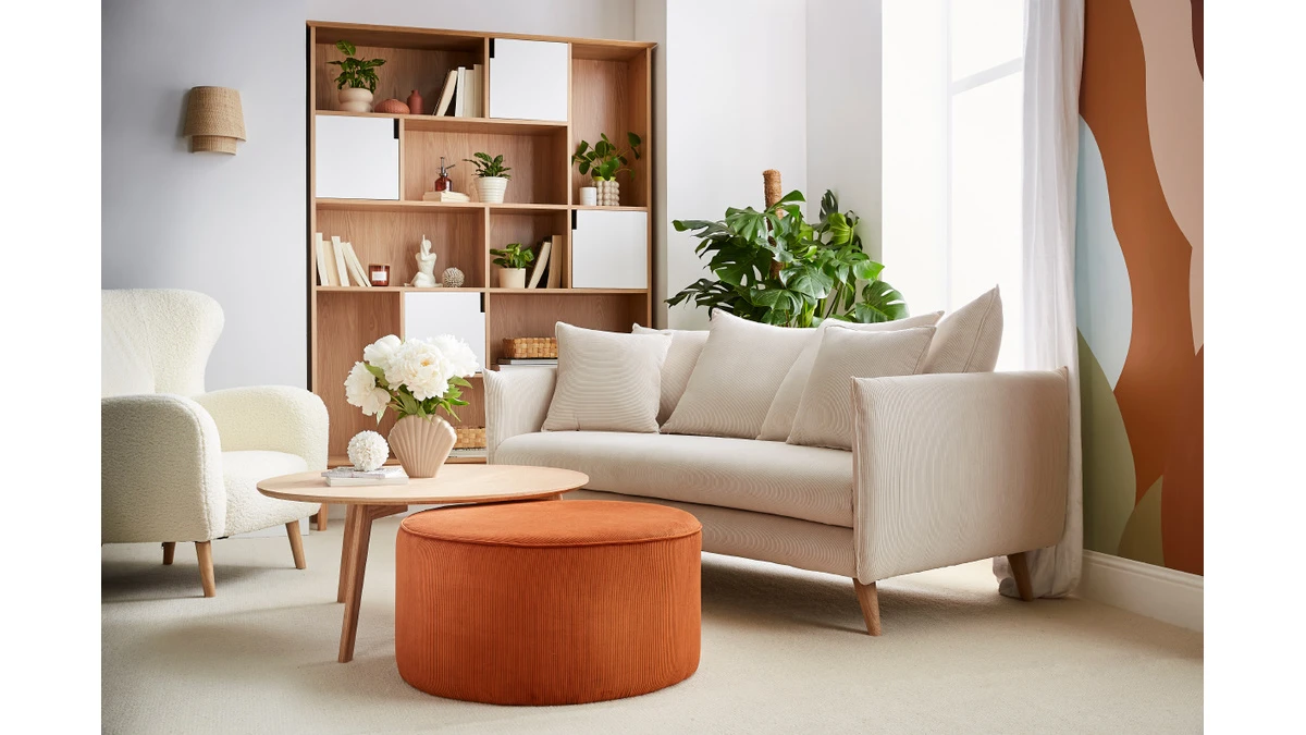 Associé à une jolie table basse en bois de la collection Miliboo, ce canapé scandinave (L178 x P97 x H91 cm) créé un espace de vie convivial et chaleureux.