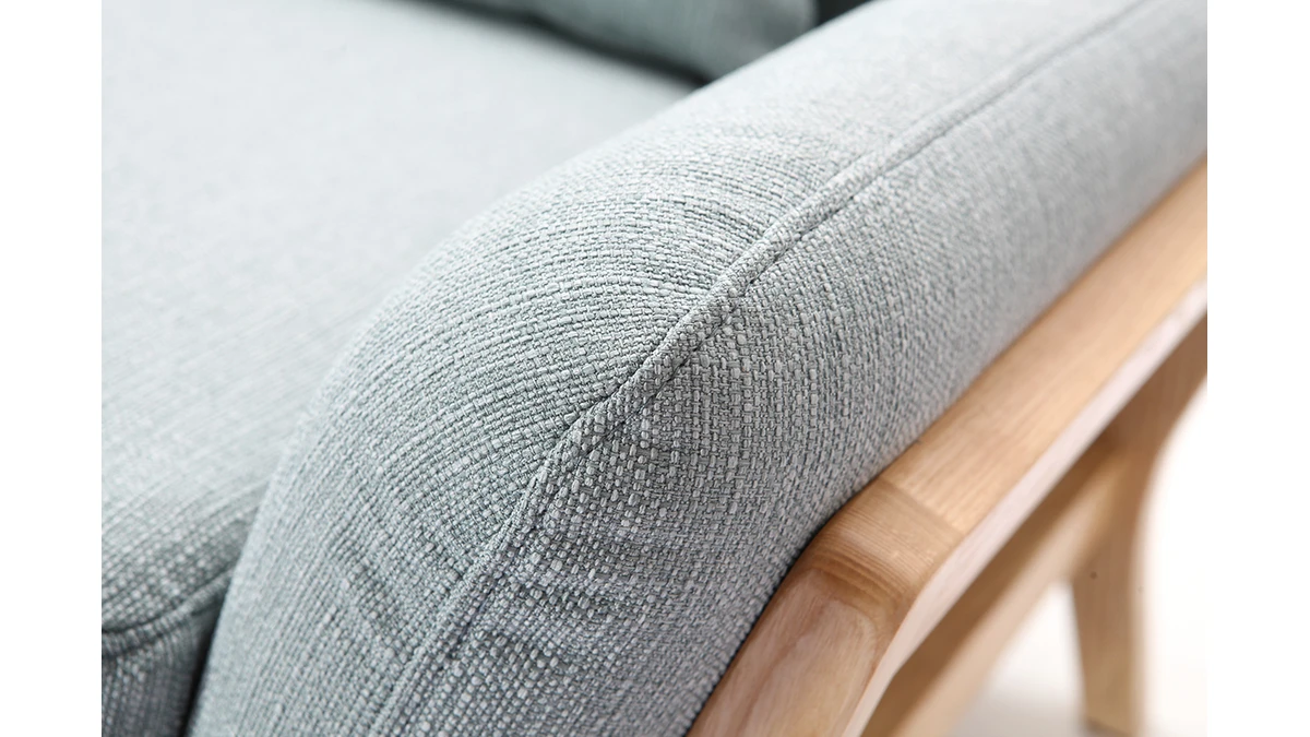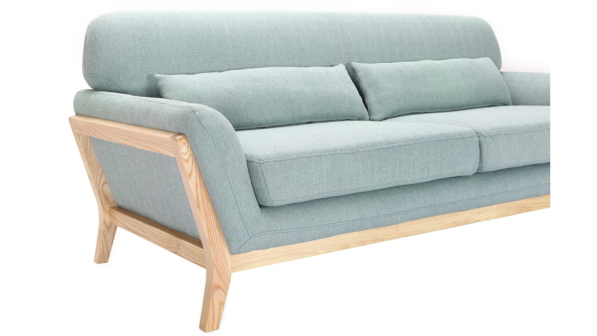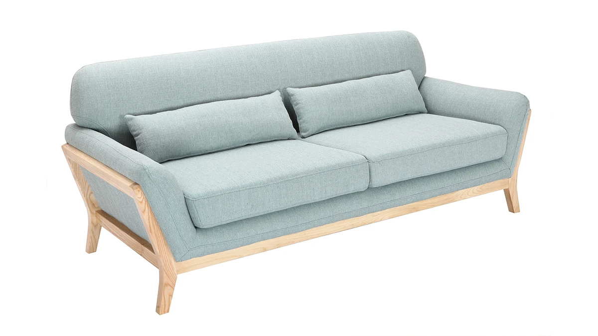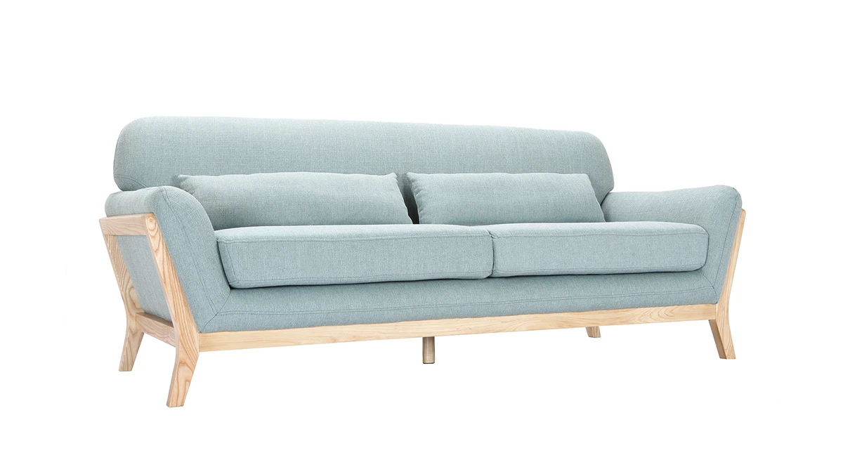 Sa structure en bois clair se prolonge au niveau du piètement donnant ainsi une continuité à ce canapé. Avec un revêtement en polyester, ce canapé 3 places YOKO charme aussi bien au niveau des yeux qu’au toucher.