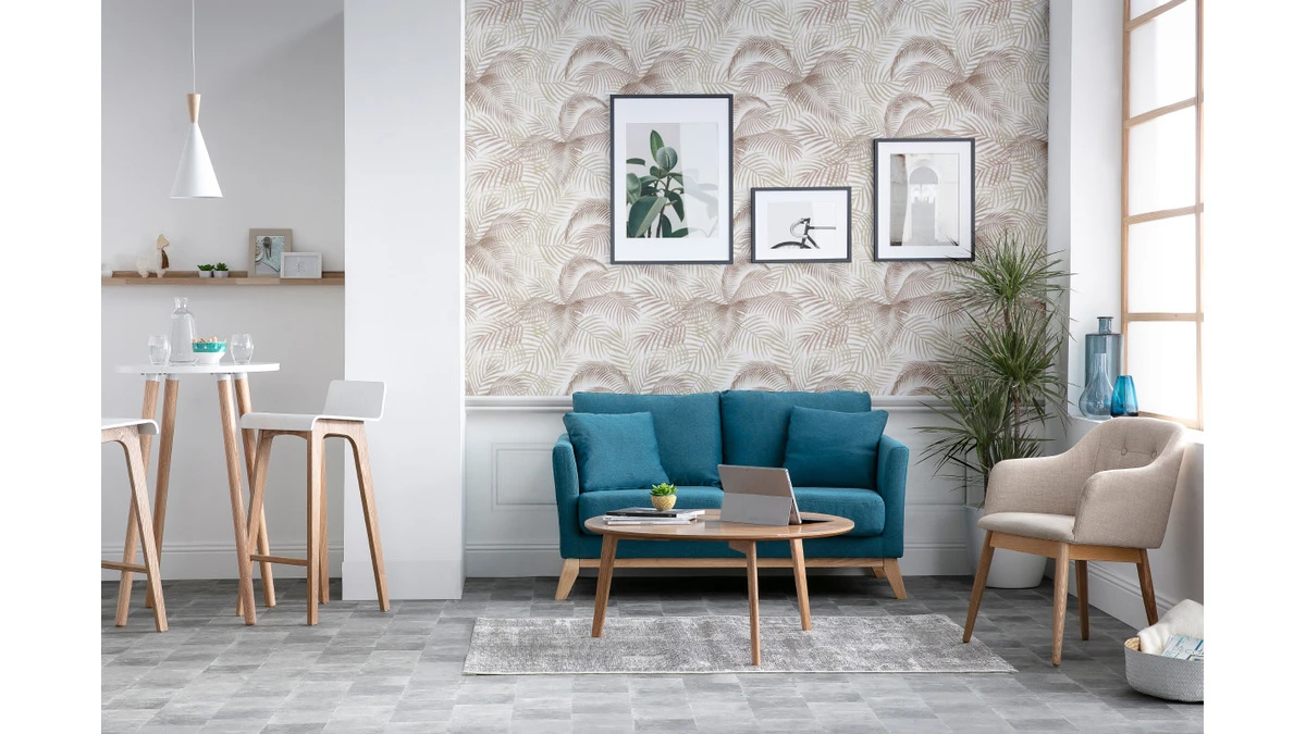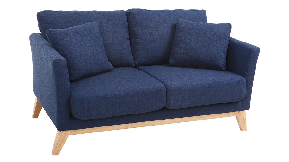 Canapé Scandinave Déhoussable 2 Places En Tissu Bleu Foncé Et Bois Clair OSLO
