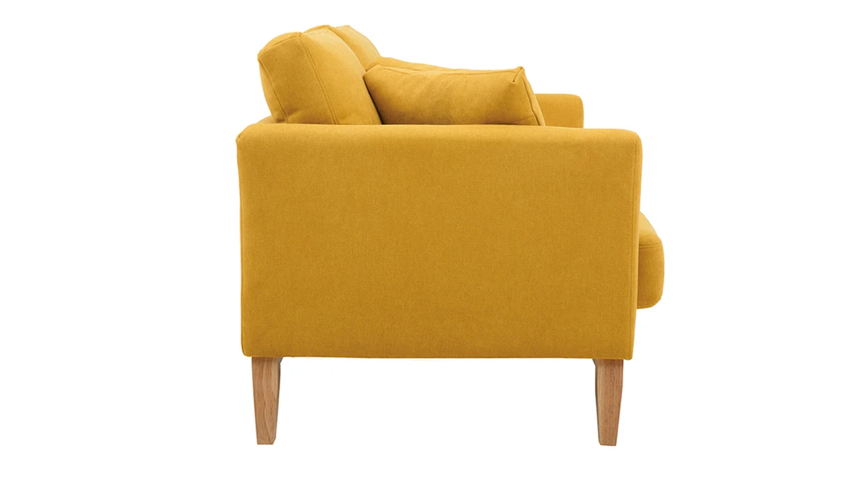Avec son revêtement effet velours, son piètement en bois clair et son design épuré, ce petit canapé s’inscrit dans la tendance nordique. Son tissu coloré en fait une assise dans l’air du temps qui se mariera aussi bien avec une décoration d’inspiration scandinave qu’un intérieur moderne et graphique.
