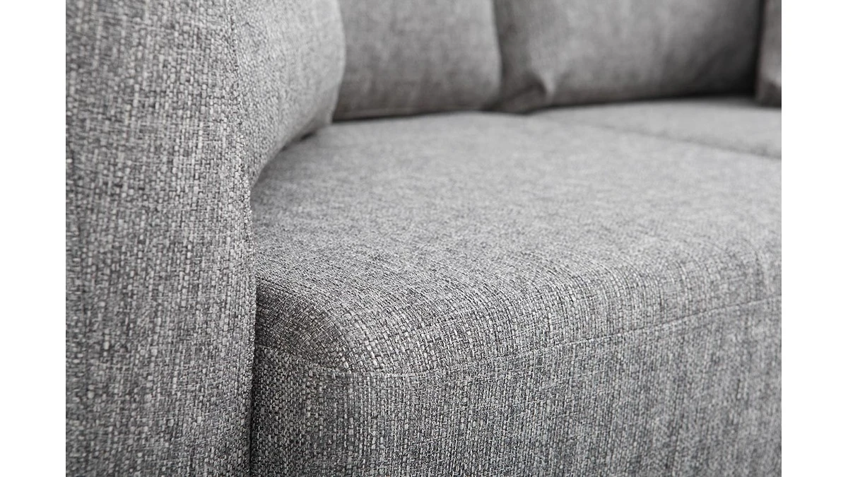Avec son revêtement en tissu, son piètement en bois clair et son design épuré, ce petit canapé s’inscrit dans la tendance nordique. Son tissu gris clair en fait une assise dans l’air du temps qui se mariera aussi bien avec une décoration d’inspiration scandinave qu’un intérieur moderne et graphique.