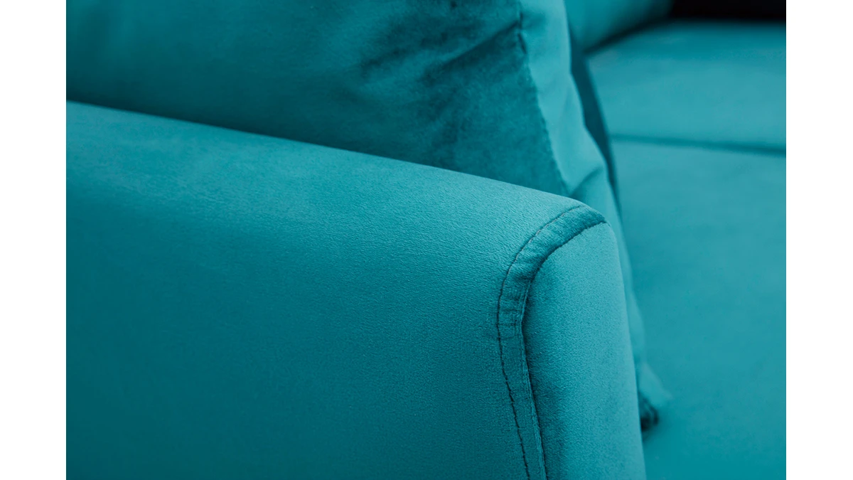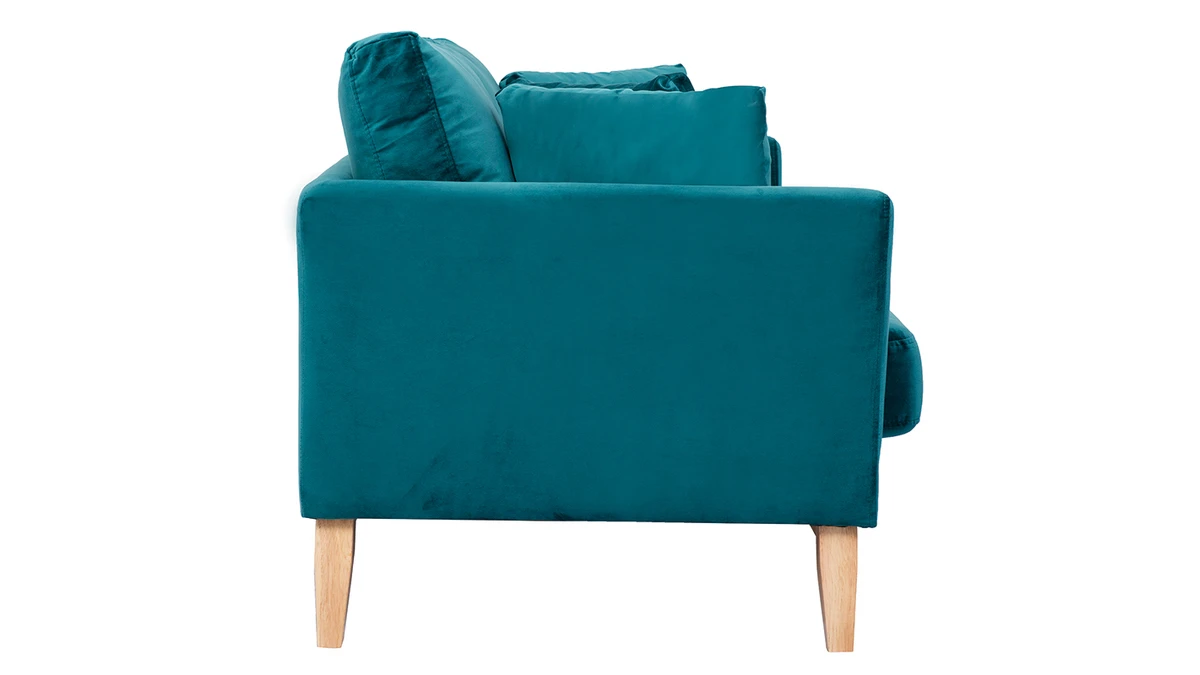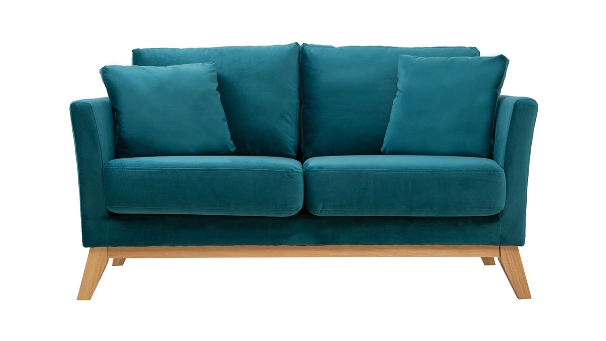 Avec son revêtement en velours, son piètement en bois clair et son design épuré, ce petit canapé s’inscrit dans la tendance nordique. Son tissu coloré en fait une assise dans l’air du temps qui se mariera aussi bien avec une décoration d’inspiration scandinave qu’un intérieur moderne et graphique.