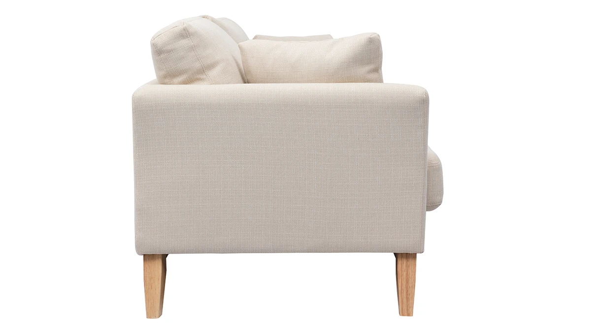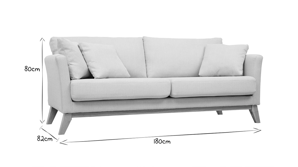 Le canapé scandinave 3 places OSLO : un look d’inspiration nordique et un revêtement en tissu beige pour un salon déco et indémodable !