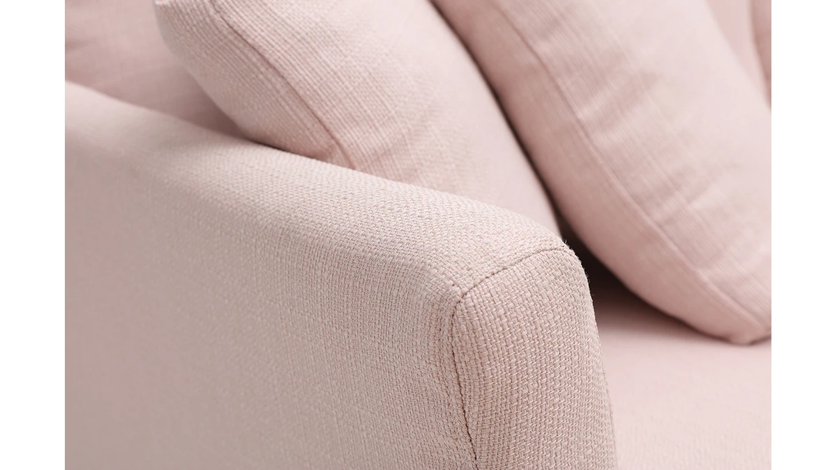 Pieds inclinés en bois clair, revêtement en tissu, formes raffinées, ce canapé possède toutes les caractéristiques des meubles scandinaves. Le rendu de son design et de son coloris rose clair en fait une assise sobre et tendance qui saura s’intégrer dans votre espace de vie. Univers cocooning ou bien axé contemporain, ce canapé deviendra l’élément central de votre déco intérieure.