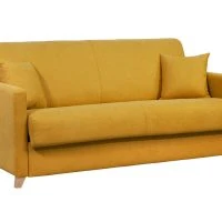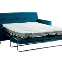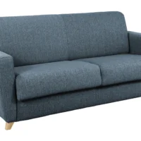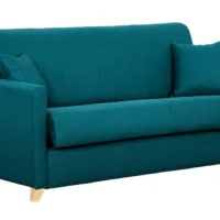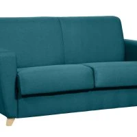 Canapé Convertible 3 Places En Tissu Bleu Canard Et Bois Clair Avec Matelas L140 Cm 12 Cm GRAHAM