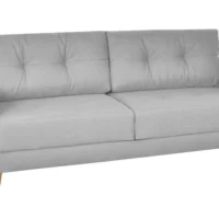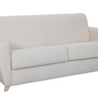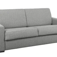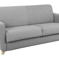 Canapé Convertible 3 Places En Tissu Gris Clair Et Bois Clair Avec Matelas L140 Cm 12 Cm GRAHAM