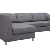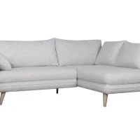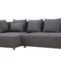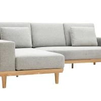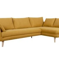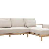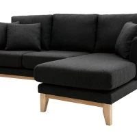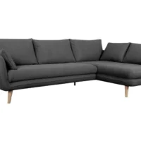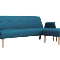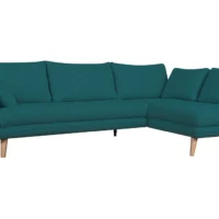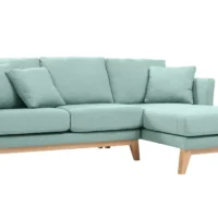 Canapé D’angle Convertible Réversible Avec Coffre 4 Places En Tissu Bleu Canard Et Bois Clair GRAHAM
