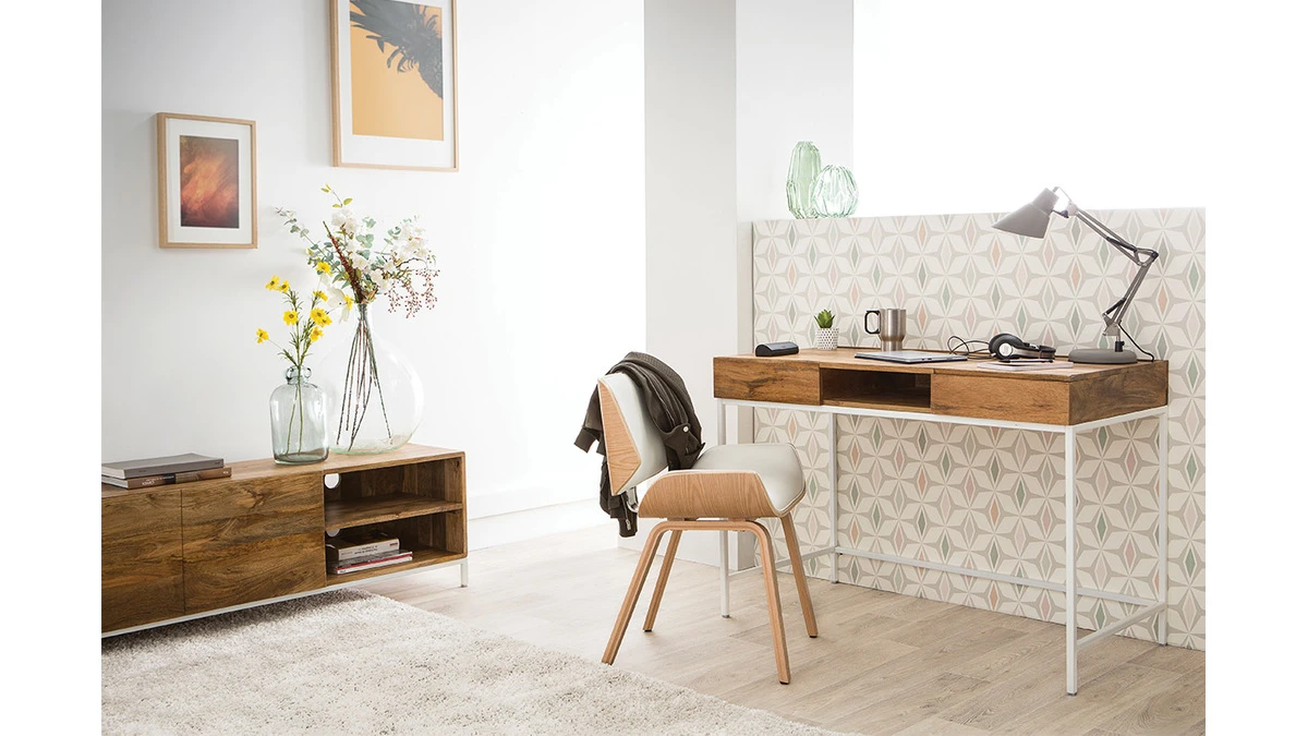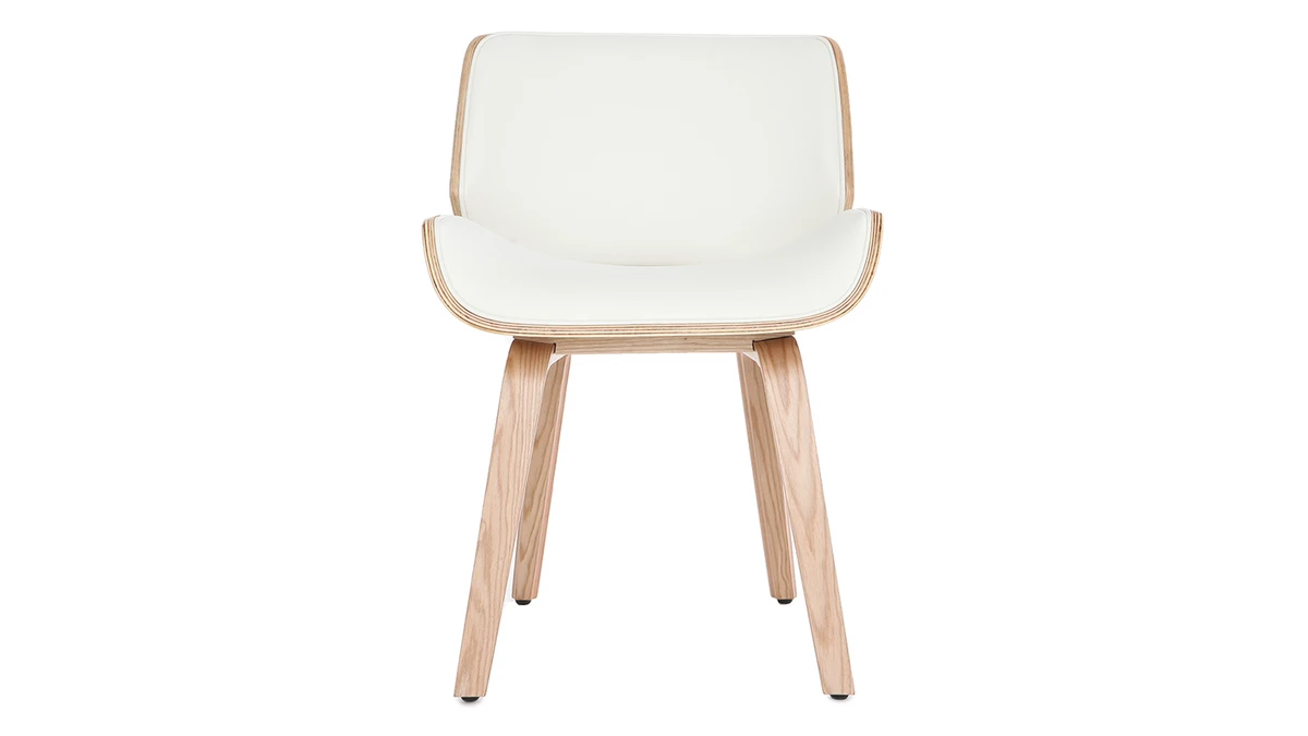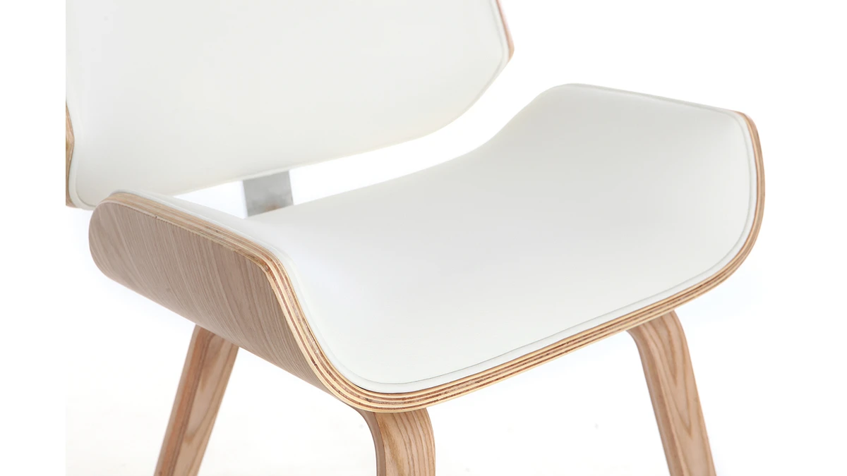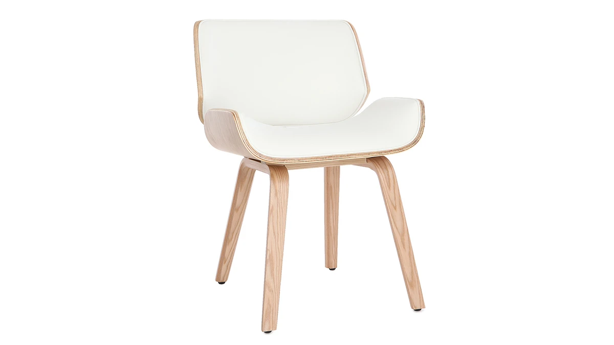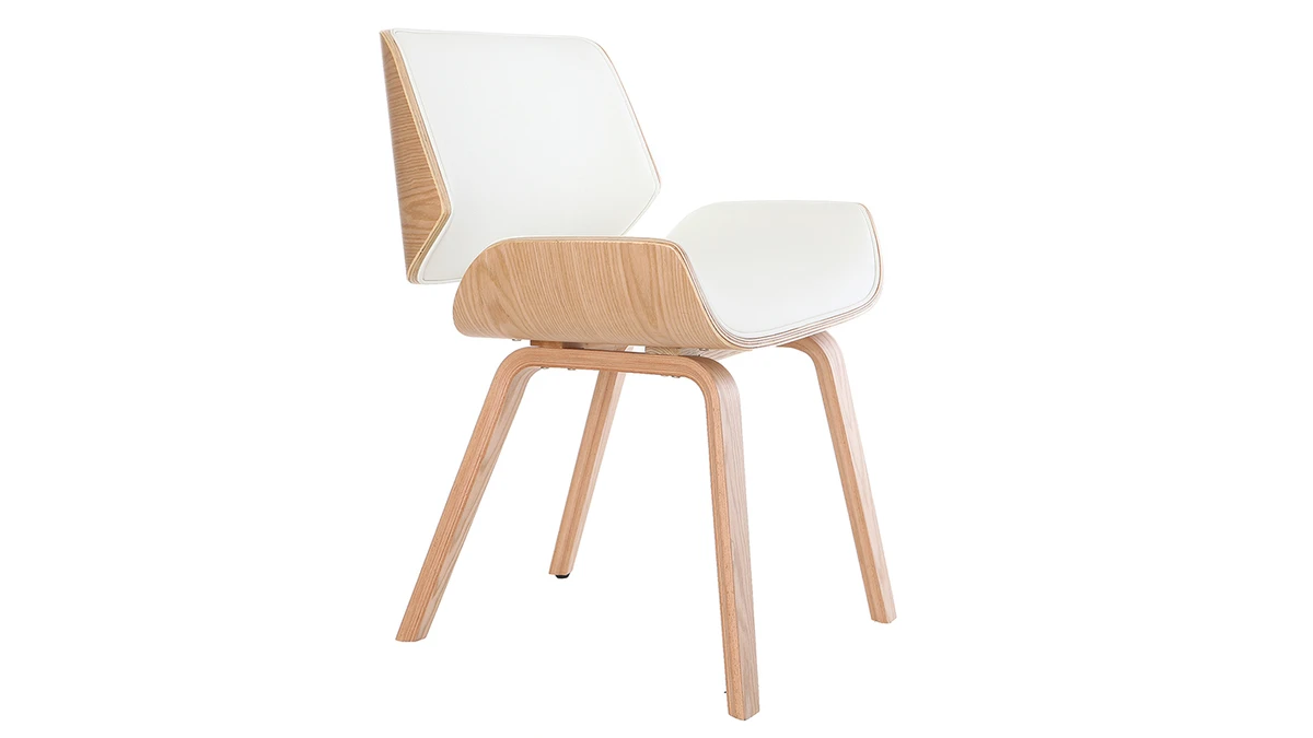 Mélange de courbes et de lignes franches, cette chaise blanche et bois clair est un objet déco à part entière. Sa forme est inspirée du design scandinave et des pièces vintage pour un intérieur au charme authentique.