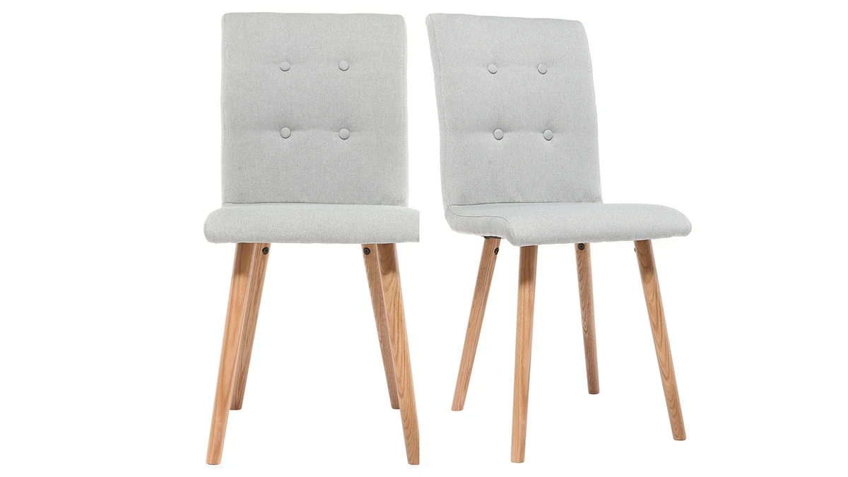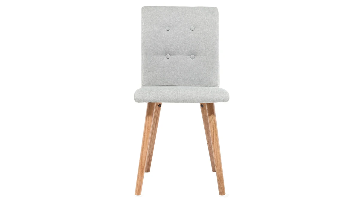 Contraste de bois clair et de tissu gris clair, ce modèle de chaise de salle à manger est signée d’une élégante simplicité. Pieds en bois clair hêtre massif et revêtement capitonné en tissu gris clair (100% polyester) forment doux et sobre.