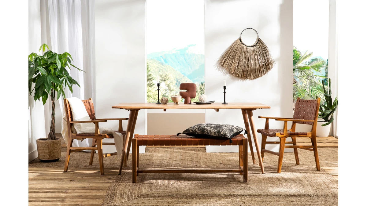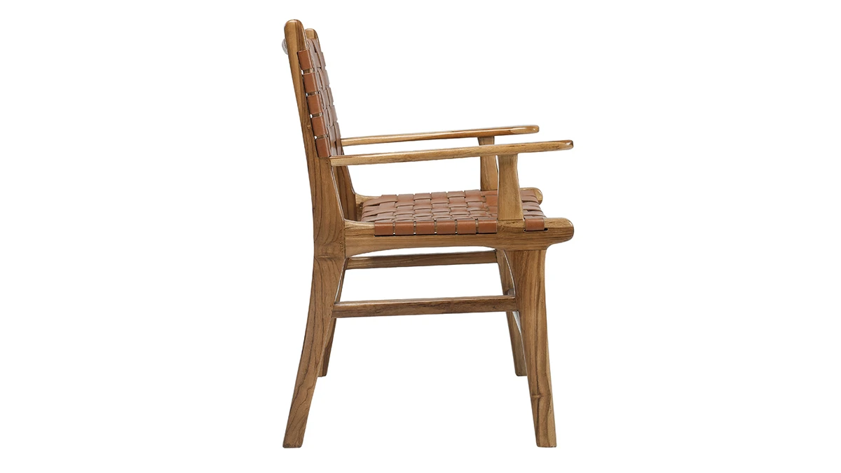 Chaise en bois teck massif et sangles en cuir marron : LODGE est une piĂšce d’exception rĂ©alisĂ©e avec des matĂ©riaux bruts au charme naturel. Son dossier et ses accoudoirs offrent un parfait maintien. Table Ă manger et bureau en bois ont trouvĂ© la chaise idĂ©ale pour les accompagner de la plus belle maniĂšre. Le teck est un bois tropical apprĂ©ciĂ© pour sa soliditĂ© et ses jolies nuances. Il a toute sa place dans les lieux de vie.