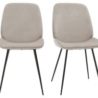 Ces chaises de salle à manger séduisent par leurs lignes épurées et volumes minimalistes, un exercice d’équilibre et de retenu loin de tout superflu. Les assises charment par leurs rondeurs et se parent d’un élégant coloris taupe. Parfait dosage entre le gris et le marron, cette couleur apaisante et intemporelle s’imposera avec un charme naturelle dans votre intérieur. Le revêtement en tissu velours à l’inspiration vintage contraste avec la modernité de l’élancé piètement noir. Un juste compromis à la fois graphique et sophistiqué qui trouvera autant sa place dans une ambiance rétro que contemporaine.