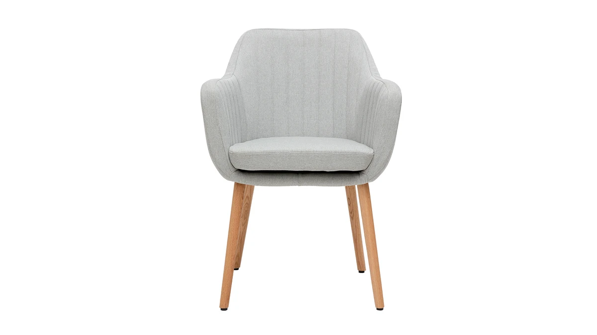 Cette chaise scandinave possède un look inspiré des pays nordiques. Avec son revêtement en tissu au toucher très agréable (100% polyester) et son piètement en chêne massif, ce fauteuil gris et bois clair offre un design ultra moderne et tendance.