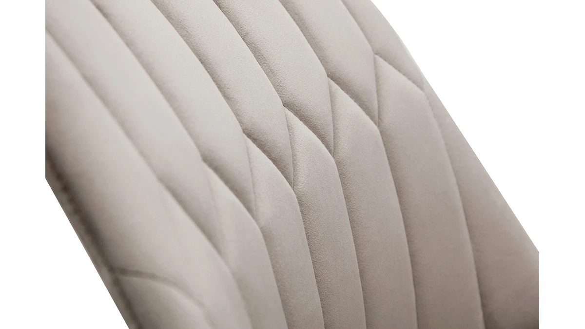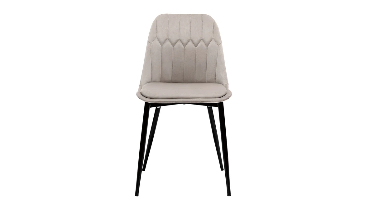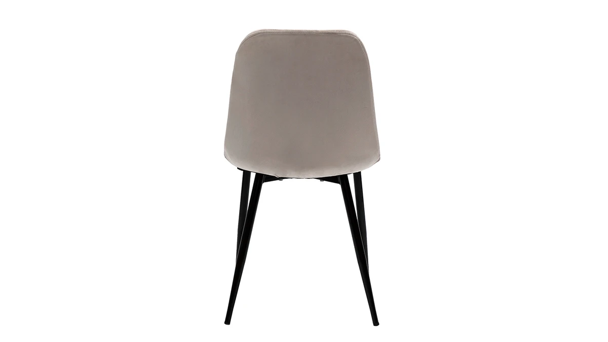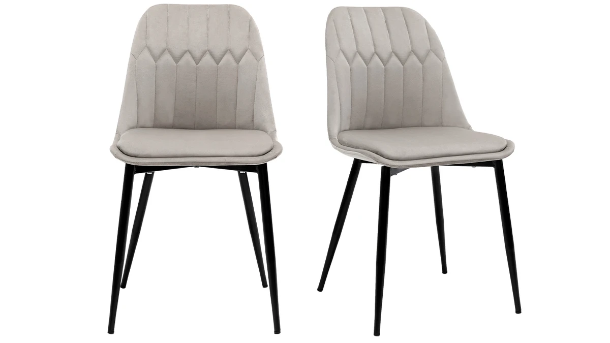 Avec leur sublime revêtement en tissu velours taupe (100% polyester) et leur jeu de surpiqûres décoratives, ces chaises modernes taupe font souffler un vent de renouveau dans nos intérieurs. Élégant et très original, l’effet matelassé qui orne la partie intérieure du dossier confère à ces chaises une identité graphique affirmée. Les pieds élancés en métal noir se marient à merveille au tissu velours.