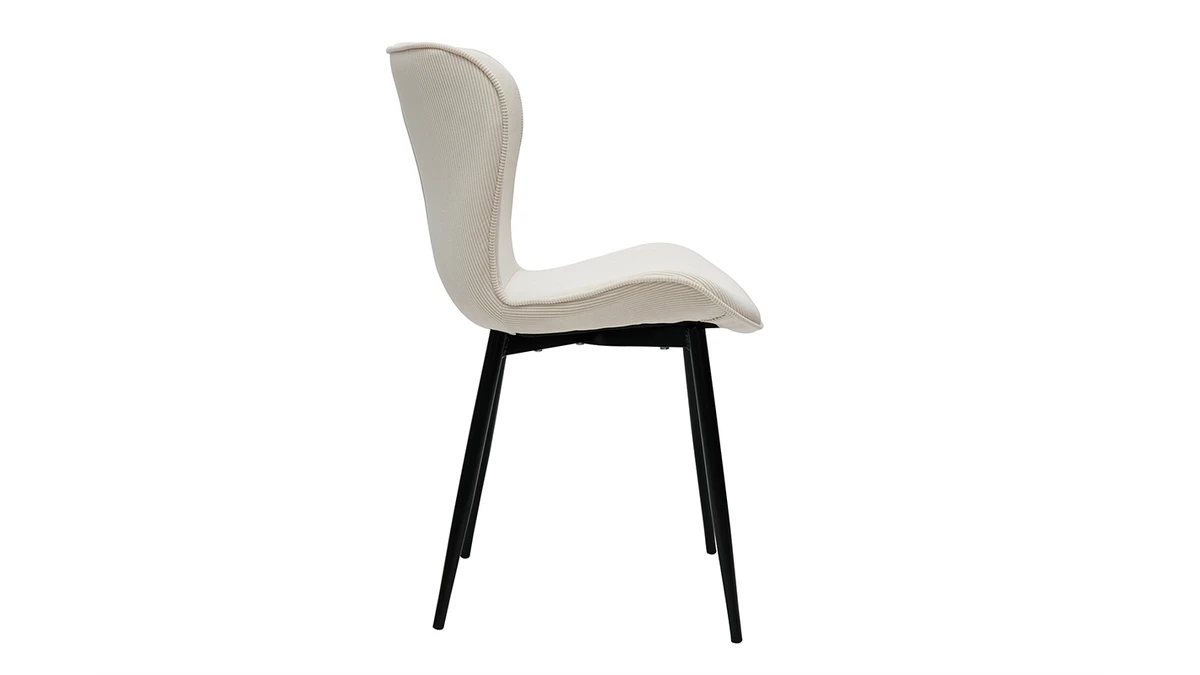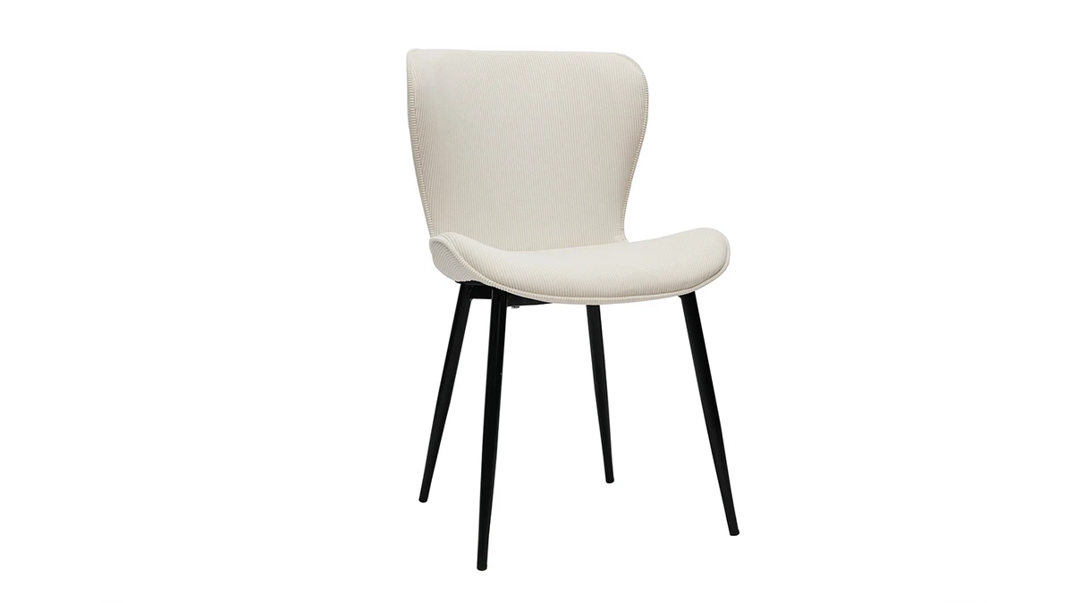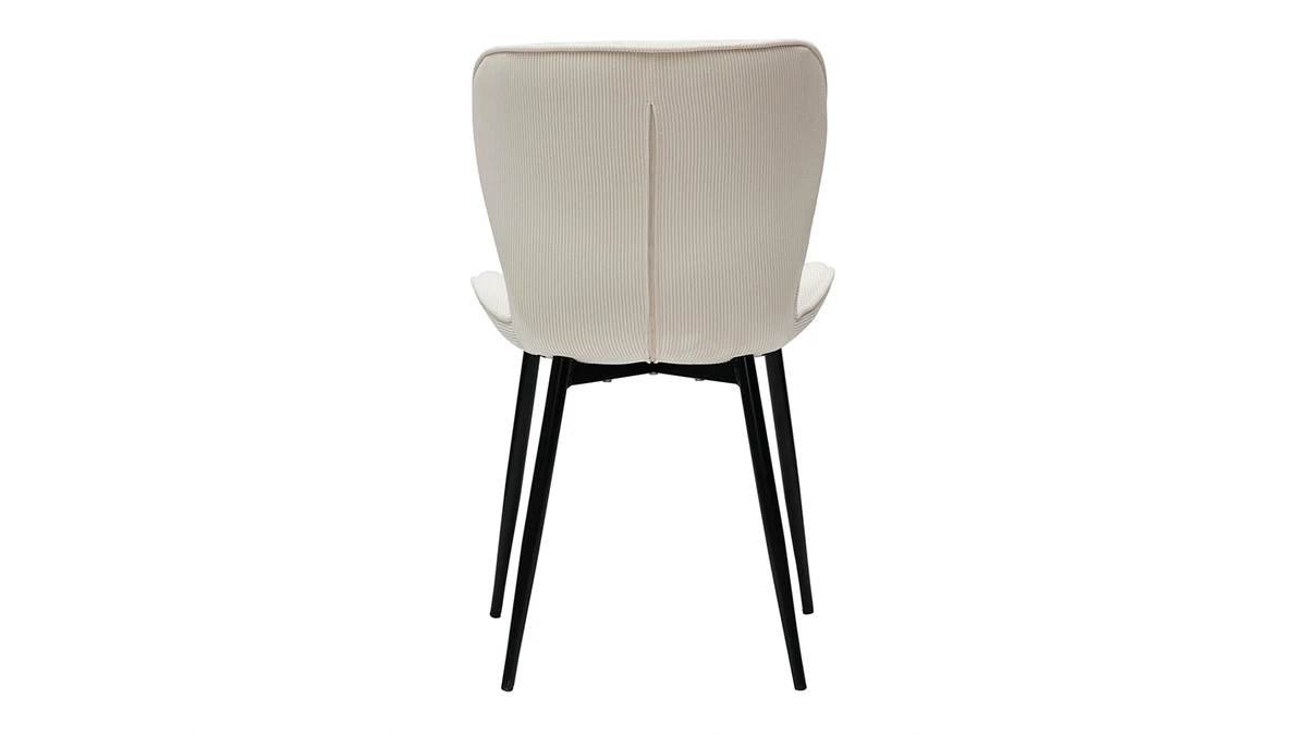 Les chaises design ADDICT se distinguent par la délicatesse de leurs lignes. Elles se composent d’une coque rembourrée entièrement recouverte d’un superbe tissu en velours côtelé gris et d’un piètement en métal noir. L’aspect vintage de leur revêtement texturé en fait des assises chic pile dans la tendance. On aime particulièrement le contraste entre la forme fluide et enveloppante du dossier et le piètement fin et fuselé… Un mariage réussi entre légèreté et confort !