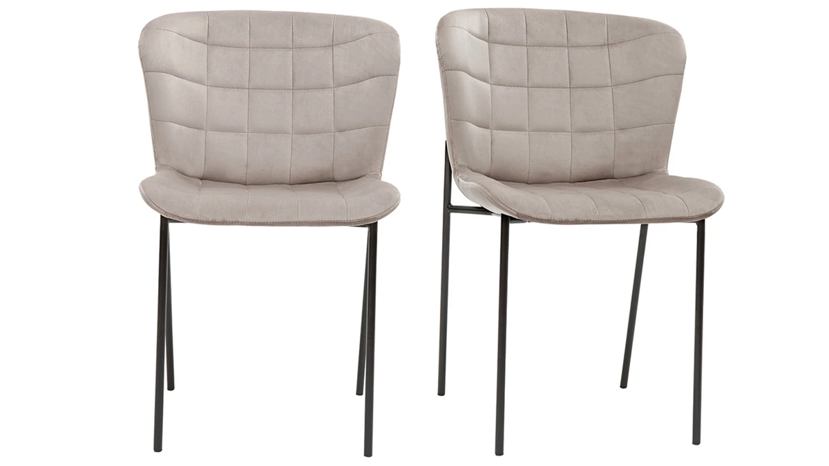Savourez le bonheur d’être ensemble, confortablement installés dans ces chaises enveloppantes. Avec leur dossier haut et incurvé (H34 cm) et leur assise rembourrée (densité de la mousse 25 kg/m3), ces chaises taupe et métal noir promettent de doux moments de partage autour de la table.