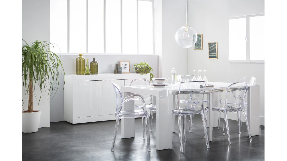 Composées de polycarbonate, un matériau résistant et facile d’entretien, ces chaises transparentes séduisent par leur look épuré ! Formes douces et arrondies, design ludique, parfaites pour créer une ambiance lumineuse autour de vos tablées, ces confortables chaises de cuisine et salle à manger apporteront de la personnalité à votre salle à manger ! Pour former le combo parfait, associez ces chaises design à une table blanche ou en bois naturel.